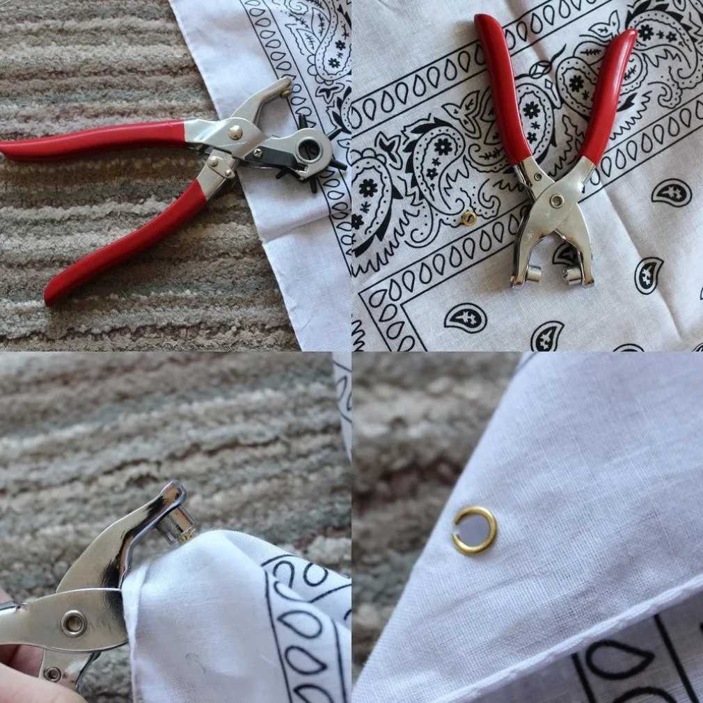 Set da 2 pezzi Punzonatrice Rotante a 5 Fori e Pinza Chiudi Occhielli con 20 Occhielli. Questo set è perfetto per aggiungere motivi e decorazioni con occhielli su una vasta gamma di materiali e per un certo numero di occasioni. Basta semplicemente selezionare la dimensione del foro, collocare la pinza in posizione sul tessuto, praticare il foro e quindi inserire l’occhiello nella posizione corretta; utilizza le pinze per premere e fissare l’occhiello sul tessuto nel modello da te scelto.