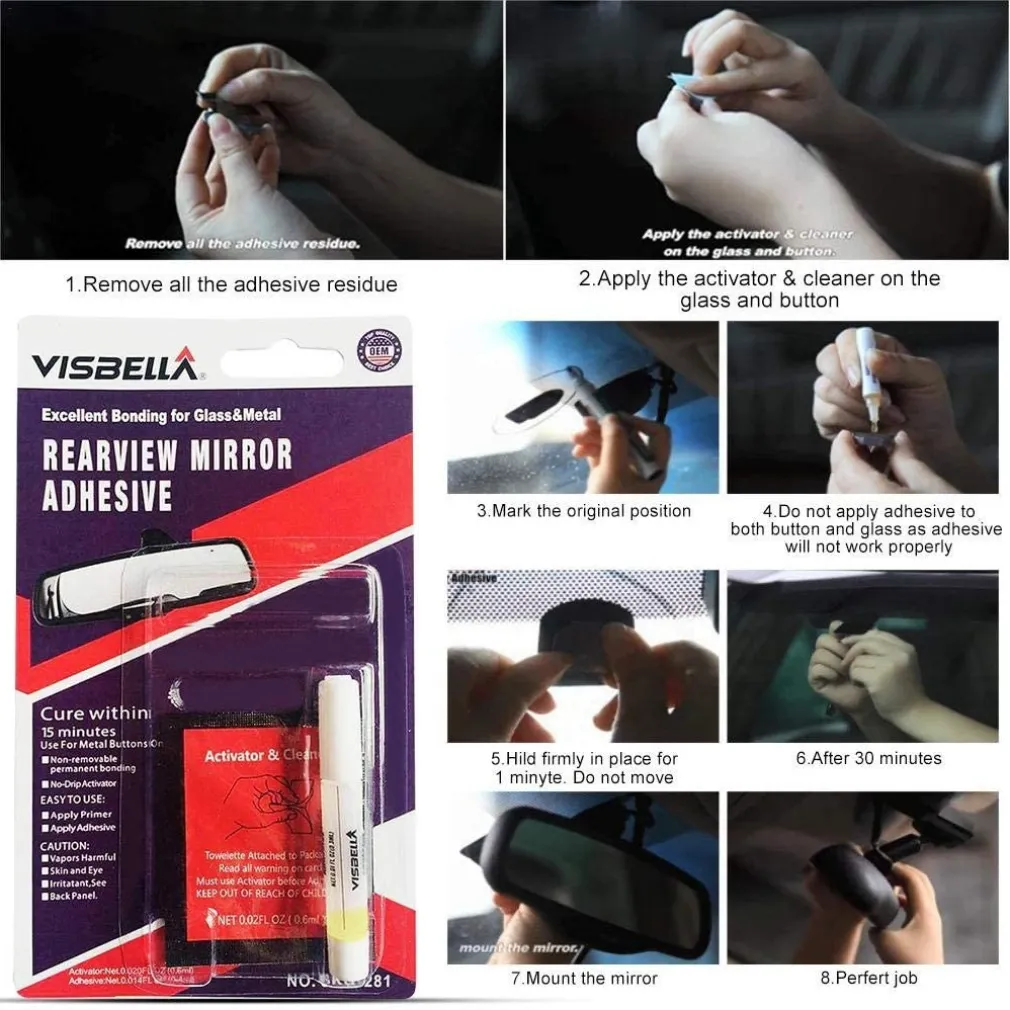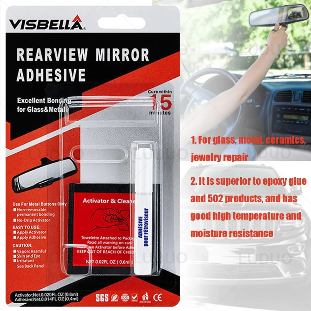 Il kit perfetto per la riparazione del tuo specchietto retrovisore, colla composta da due parti: colla e attivatore. Superiore alla comune colla epossidica, con una buona resistenza alle alte temperature e all’umidità. Ampia gamma di usi: la colla viene utilizzata principalmente per l’incollaggio di specchi retrovisori al parabrezza. Può anche essere usato per incollare parti di metallo su metallo, vetro su vetro, vetro su metallo, ceramica, gioielli.