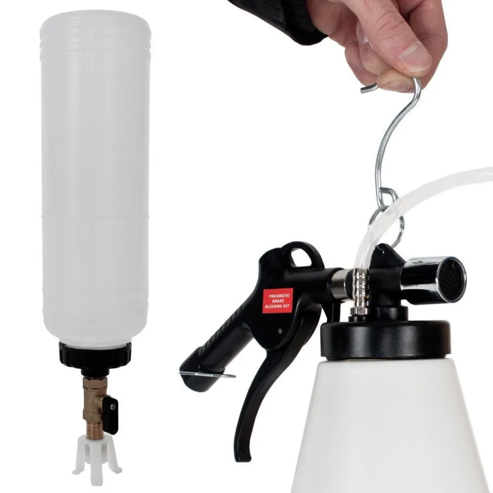 Con questo pratico utensile comprensivo di recipiente di riempimento puoi spurgare i freni senza problemi. Avrai bisogno solo di un’alimentazione di pressione standard da 6-12 bar. Il sistema frenante potrà essere spurgato da una sola persona. Questo sistema di spurgo è utilizzabile anche per sistemi di accoppiamento e sterzo. Lo spurgatore per freni estrae il liquido dal nipplo di spurgo, al fine di spurgare o cambiare completamente il liquido dei freni. Compreso in dotazione anche un tubo flessibile per l’aspirazione del liquido e 4 adattatori da avvitare.