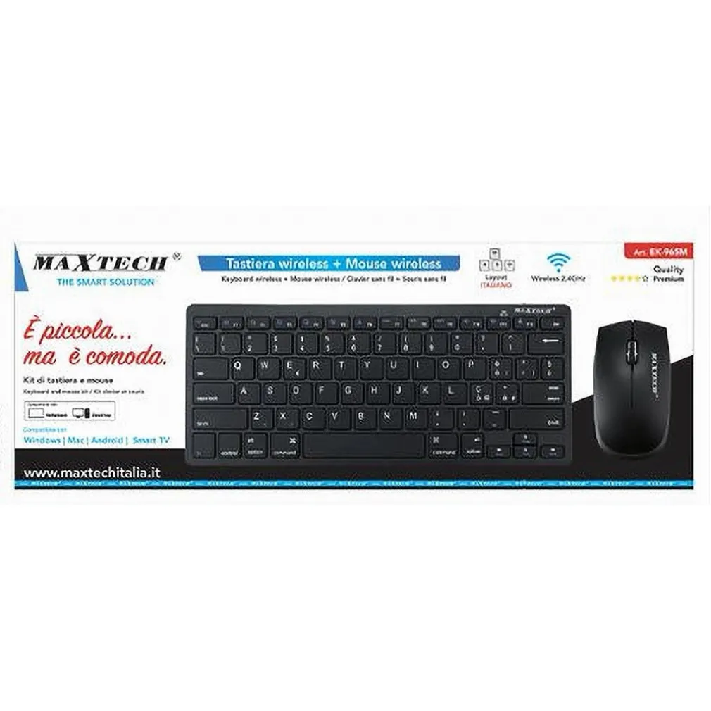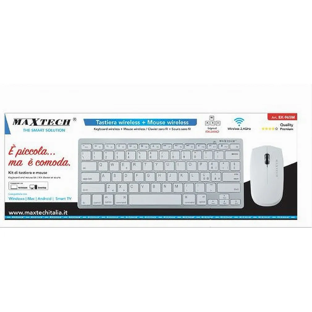 Kit Tastiera + Mouse Wireless 2.4GHz Layout ITA per PC, Windows, Smart TV e Mac EK-965M