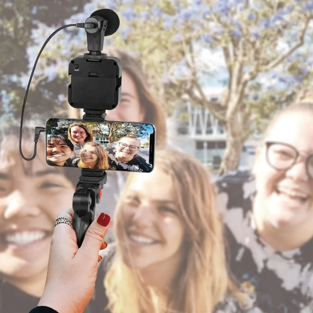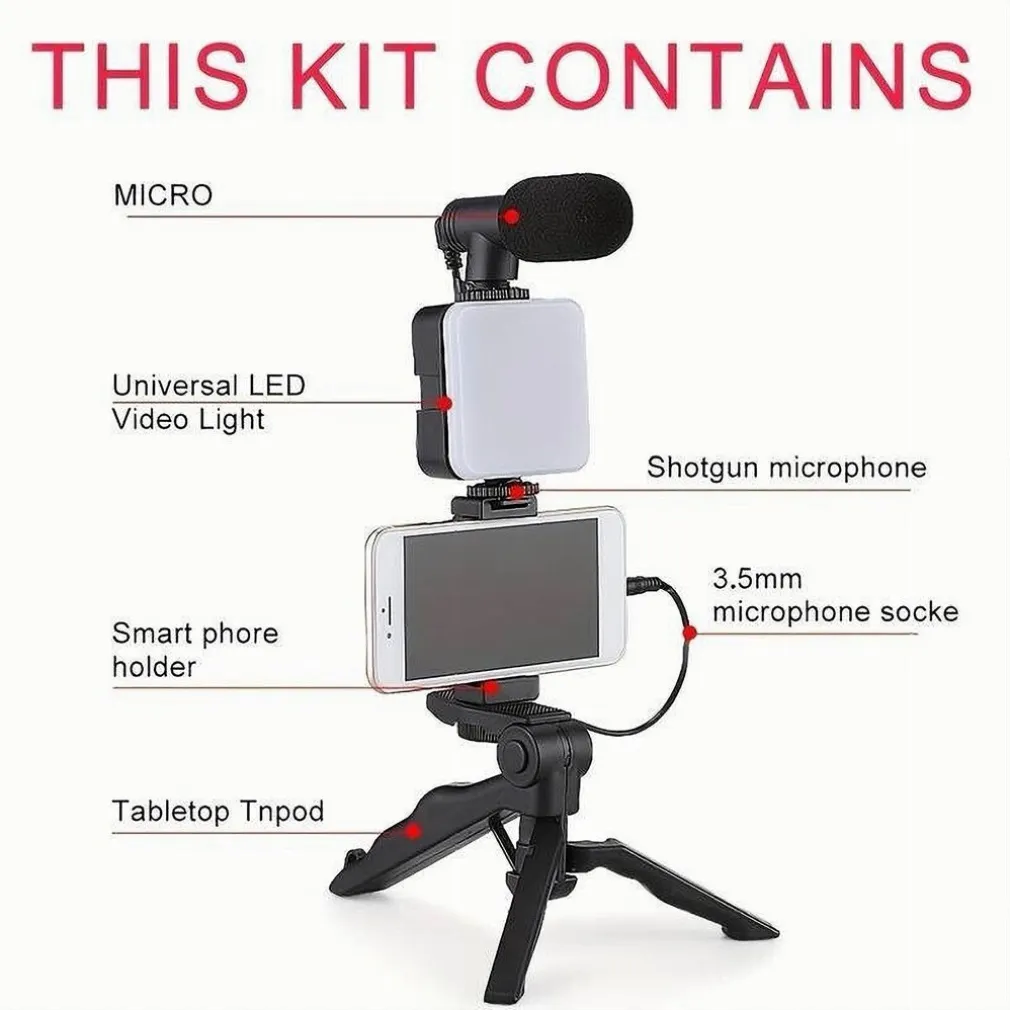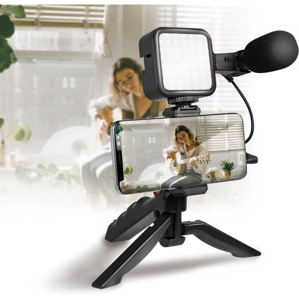 KIT VLOGGER PROFESSIONALE 4IN1 UNIVERSALE PER SMARTPHONE CON MICROFONO LUCE LED