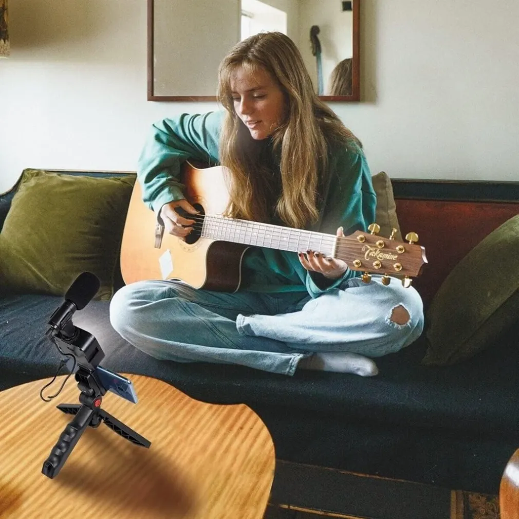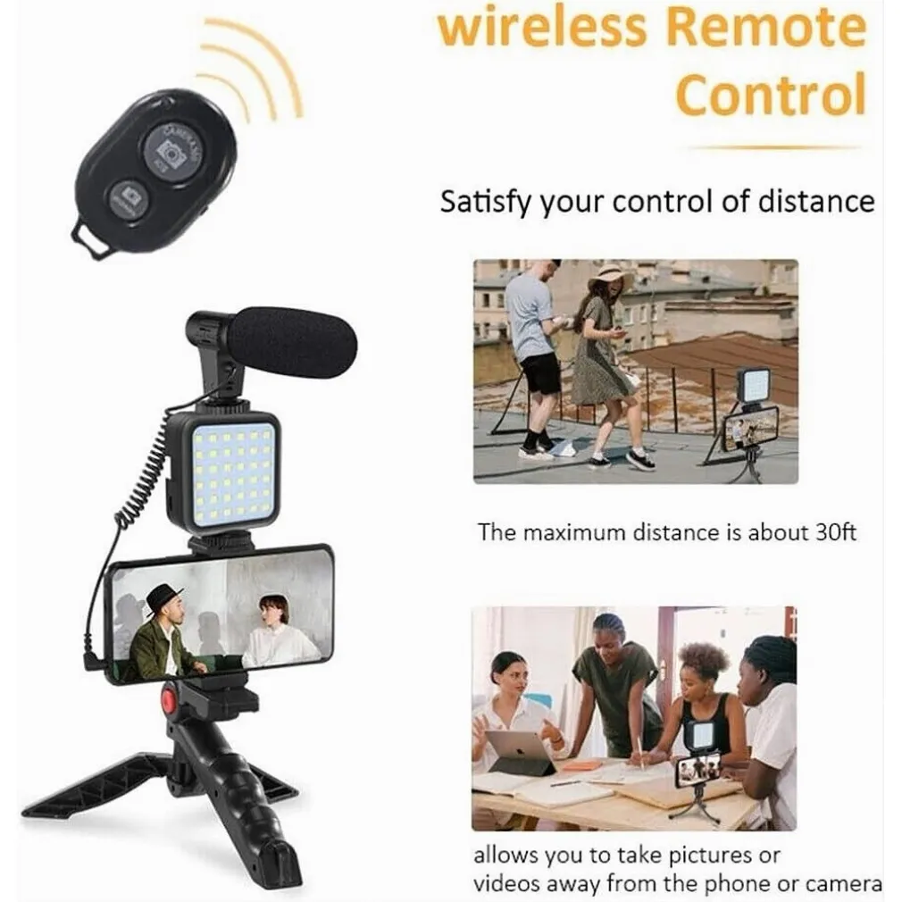 KIT VLOGGER PROFESSIONALE 4 IN 1 CON TREPPIEDE PER SMARTPHONE O VIDEOCAMERA – Il kit vlogger professionale è essenziale per chi cerca qualità superiore nei propri contenuti. Dotato di microfono di alta qualità e luce a LED, questo set è ideale per migliorare la produzione video sia in interni che in esterni. Scopri la facilità di montaggio e l’uso intuitivo del nostro kit universale, e trasforma il tuo smartphone in uno studio di registrazione mobile. Con telecomando wireless e adattatore universale AUX, le tue sessioni di vlogging saranno libere da qualsiasi vincolo!