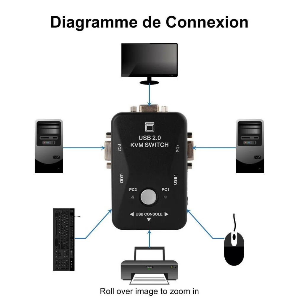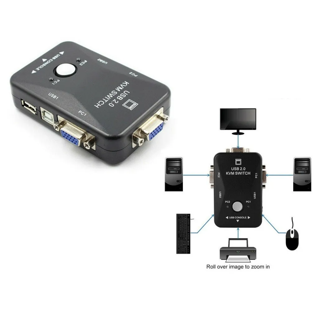 KVM Switch 2 Porte USB2.0 Per PC Tastiera Mouse Monitor VGA Stampante Box