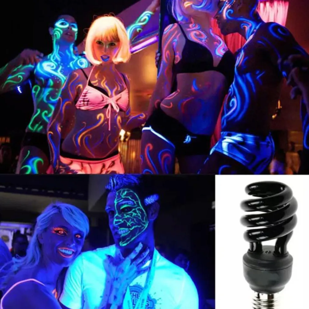 Lampada a luce nera di wood o comunemente chiamata UV ultravioletti,luce che supera lo spettro del visibile, ottima per effetti luminosi,discoteche, per Dj che operano in tale settore, fa risaltare i colori come il bianco facendolo apparire bluetto / viola.