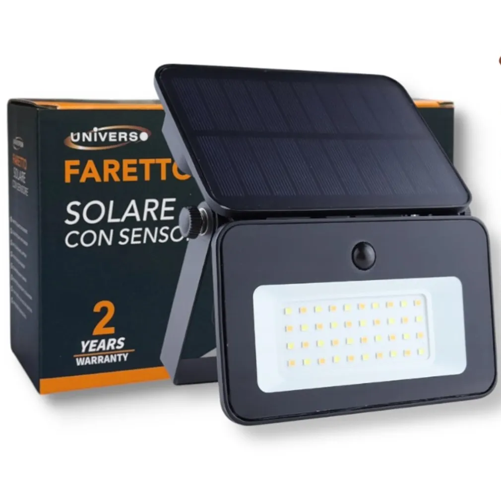 LAMPADA APPLIQUE PROIETTORE LED MURO CON PANNELLO SOLARE SENSORE PIR ESTERNO IP65 TK13-50F
