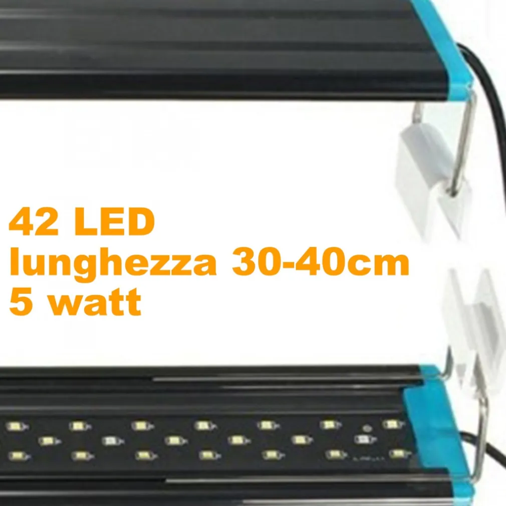 LAMPADA D73 LUCE PLAFONIERA ALLUNGABILE ESTENDIBILE LED PER ACQUARI ACQUARIO BORDO VASCA REGOLABILE 30 a 40 CM 5W
