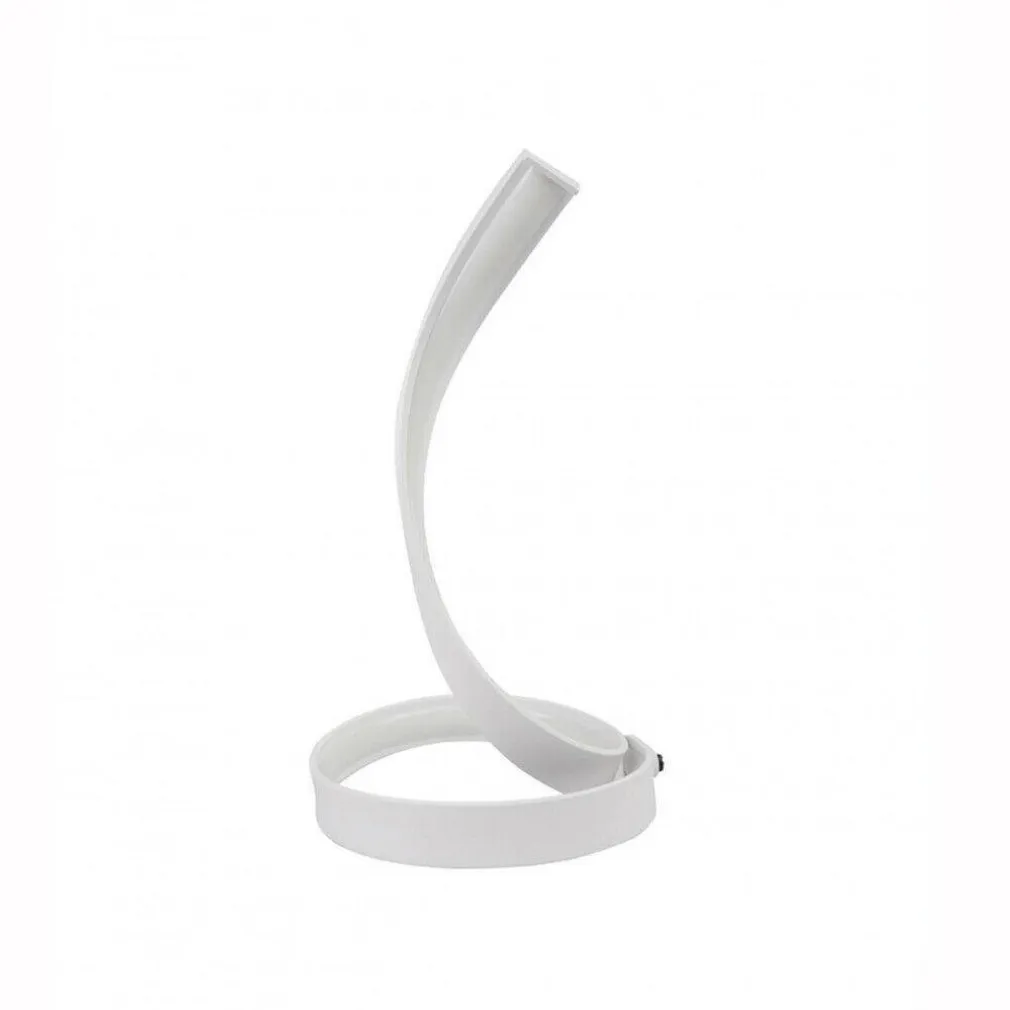Lampada dal design moderno con forma spirale del tutto originale. Particolarmente indicata per ambienti moderni da posizionare su scrivanie, mobiletti bassi o in camera da letto. Realizzata in alluminio verniciato di colore bianco, facile da installare grazie alla base d’appoggio. Dotata di led integrati con una potenza di 12 watt che costeggiano tutta la parte interna della lampada. Fornita completa di interruttore e alimentatore.