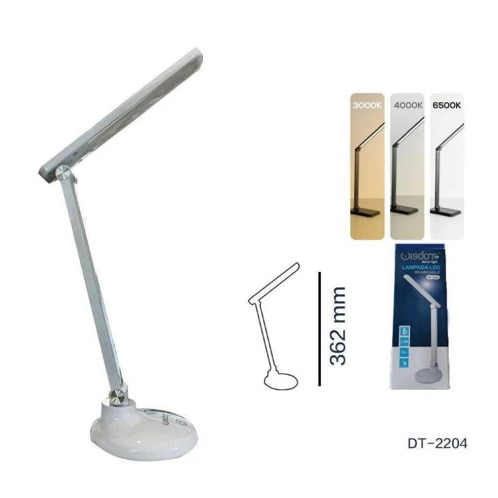 Lampada da tavolo led con interruttore touch a 3 colori di luce ed intensità di luce dimmerabile. Molto leggera e facile da trasportare. Inoltre grazie alla sua flessibilità si può direzionare secondo le proprie esigenze. Dotata di batteria al litio ricaricabile tramite USB collegabile sia alla corrente elettrica di casa o ad una porta USB del PC con un autonomia di 4/5 ore.