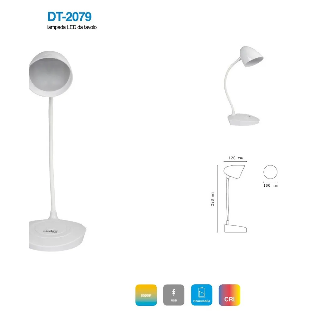 Lampada da Tavolo Scrivania LED Ricaricabile USB Dimmerabile Moderno DT-2079