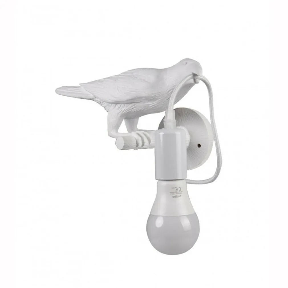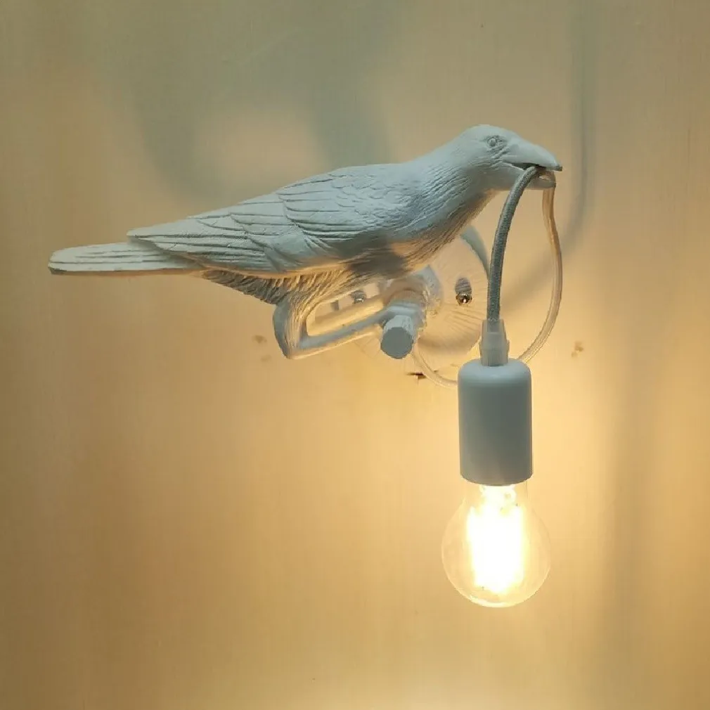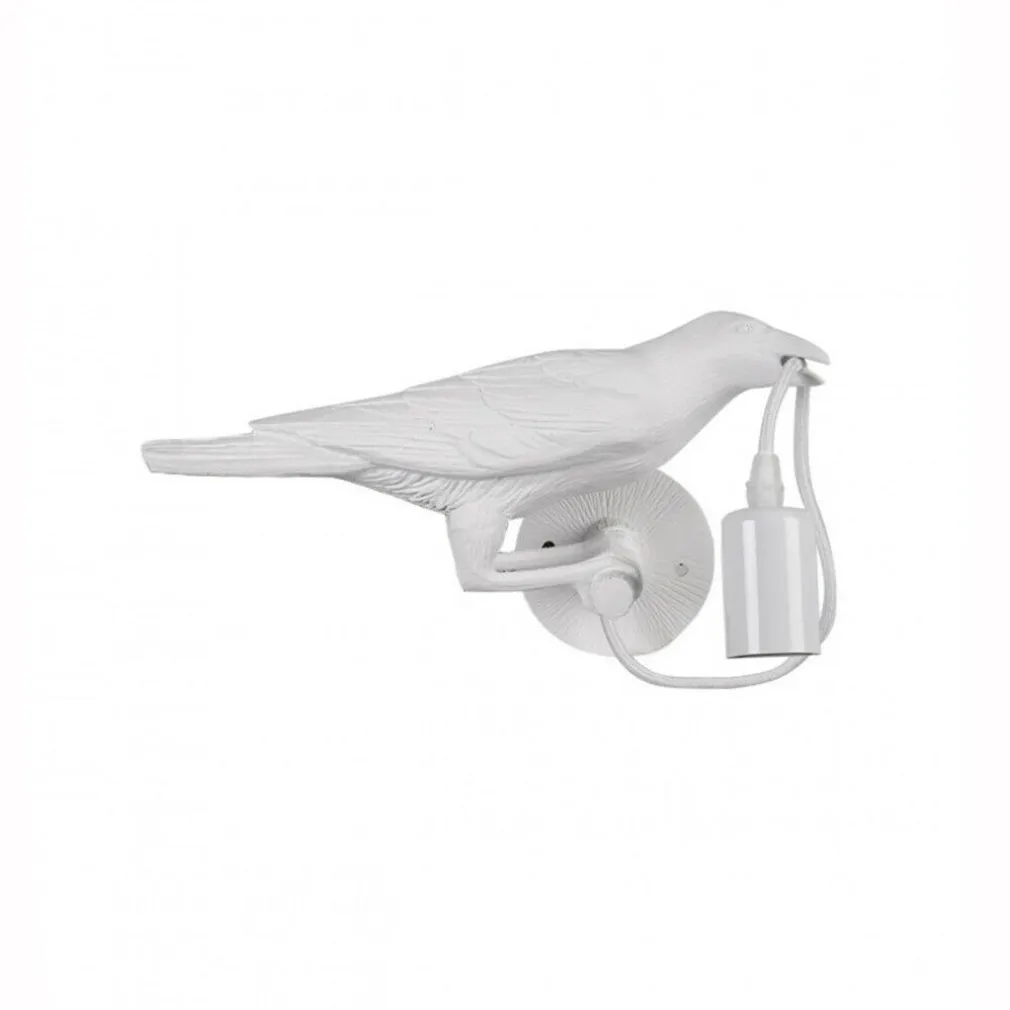 Lampada da parete decorativa a forma di Corvo con portalampada per lampadine E27. Realizzata in resina, intagliata in modo da avere una riproduzione fedele dell’uccello.