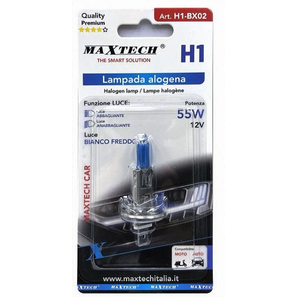 Lampada H1 Lampadina Alogena per Auto e Moto 12V 55W Luce Bianco Freddo – H1-BX02