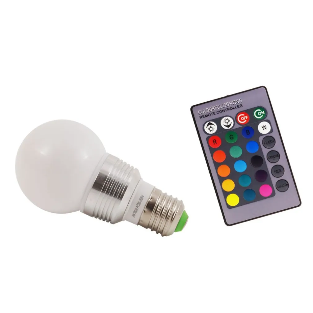 Lampadina rgb a colori con attacco e27 e con telecomando per cambiare colore ed effetto luminoso. Ottima per creare suggestivi giochi di luce in qualsiasi ambiente. Graze al telecomndo rf sarà possibile comandare la lampada a distanza. Bassissimo consumo energetico grazie alla tecnologia a led che oltre a garantire il basso consumo sono anche più durature.