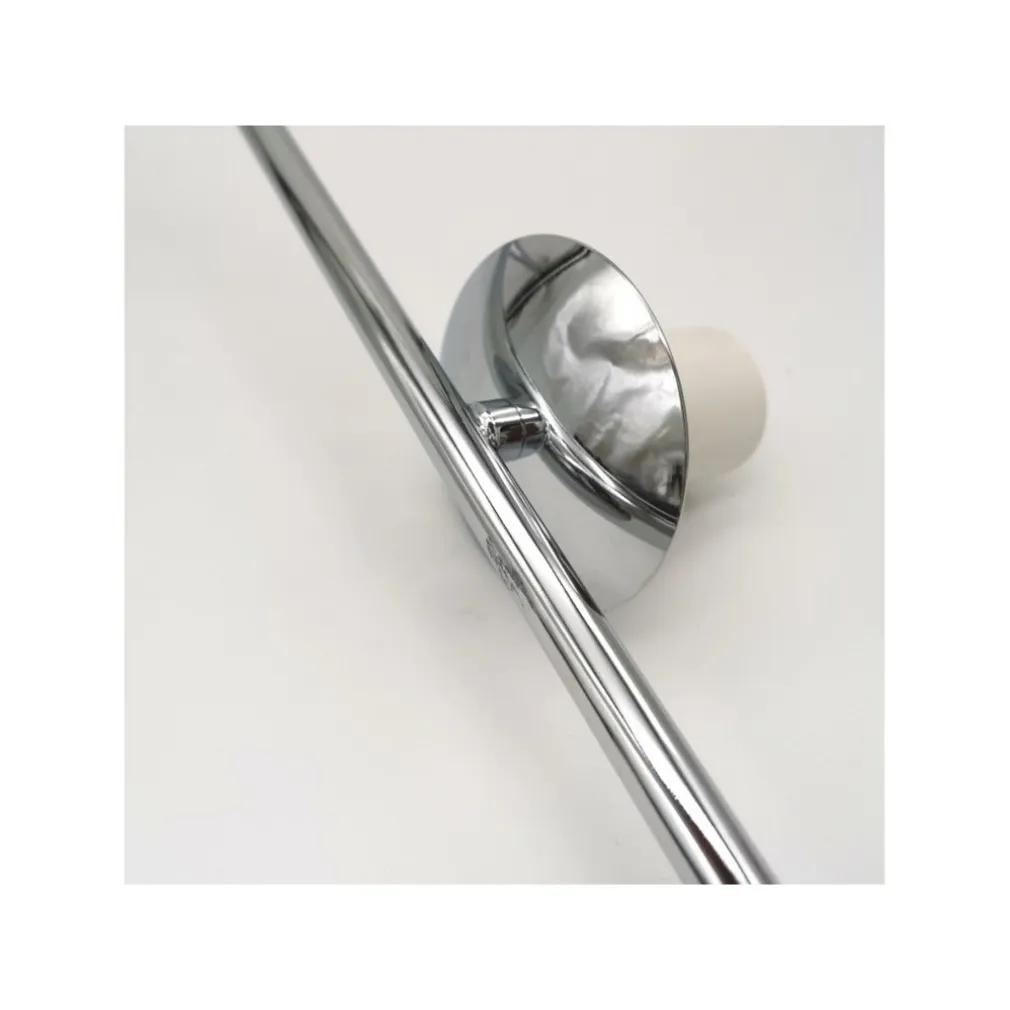 Realizzata in metallo laccato argento lucido, la lampada include un paralume a sfera in PVC bianco opaco, ideale per diffondere una luce calda e uniforme. L’attacco E27 permette la massima versatilità nella scelta della lampadina (non inclusa).