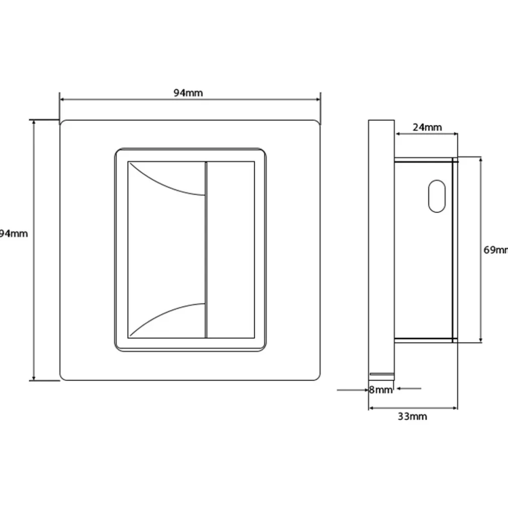apparecchio segnapasso da incasso in alluminio pressofuso. Estrema compattezza, illuminazione indiretta, vano riflettente scalettato per massimizzare il flusso, ottica protetta dagli insetti. Installazione da incasso con le molle di cui è dotato. Materiale in alluminio pressofuso verniciato a polvere. colore bianco. Applicazioni, segnalazione di percorso, impiego ideale lungo scale per migliorare la sicurezza. Potenza 1W, grado di protezione IP54, fascio 120°, lumen 30, alimentazione 220-240V, luce calda 3000K. Dimensioni esterne 94X94X30mm. Pel l’installazione da incasso a muro, da completare con la scatola.