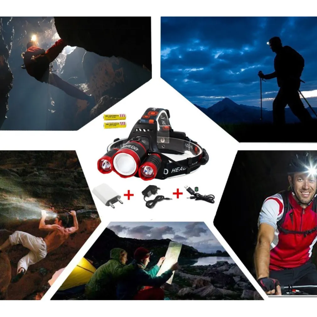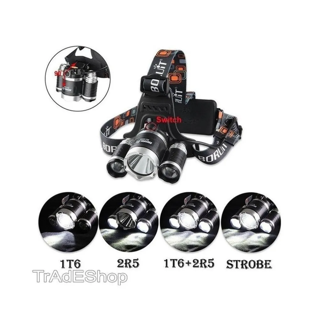 Lampada torcia led frontale a LED Cree di nuova generazione, ha una eccellente luminosità ed è perfettamente impermeabile. Grazie alla sua fascia elastica permette la regolazione in base alla dimensione della vostra testa. Il gruppo di alimentazione è sulla fascia elastica nella parte posteriore e contiene 2 batterie ricaricabili tipo 18650 . La lampada ha 3 chip led CREE che può erogare al massimo 5000 lumen di luce con 4 modalità di funzionamento.