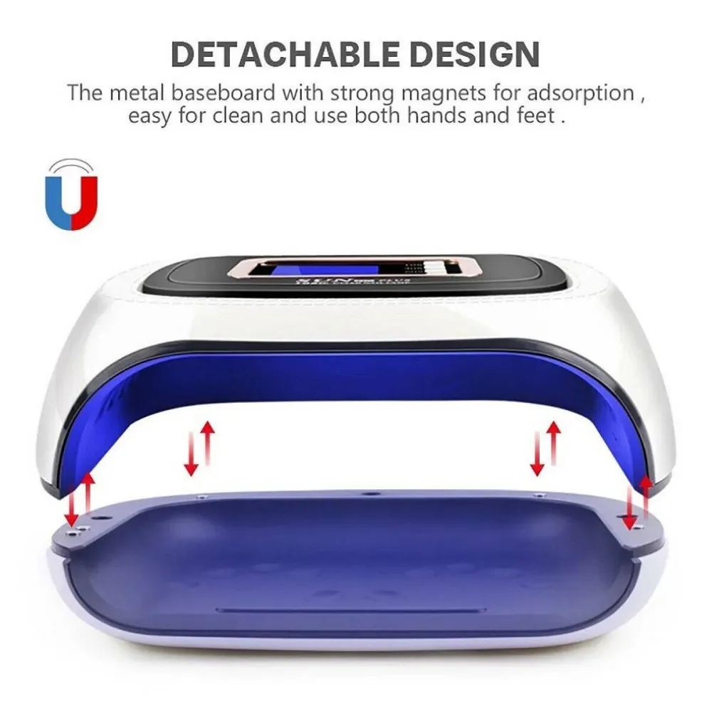Nuovissima e professionale lampada per unghie progettata con la nuova tecnologia a doppia sorgente luminosa con 42 led. Semplice da usare con i sensori automatici di induzione a infrarossi e scegliendo sul display il tempo giusto per asciugare tutti i tipi di gel per unghie a basso calore. La luce emessa dalla lampada è più vicina alla luce bianca che non danneggia gli occhi o la pelle! Garantendo che la colorazione del gel per unghie non sia stravolga.