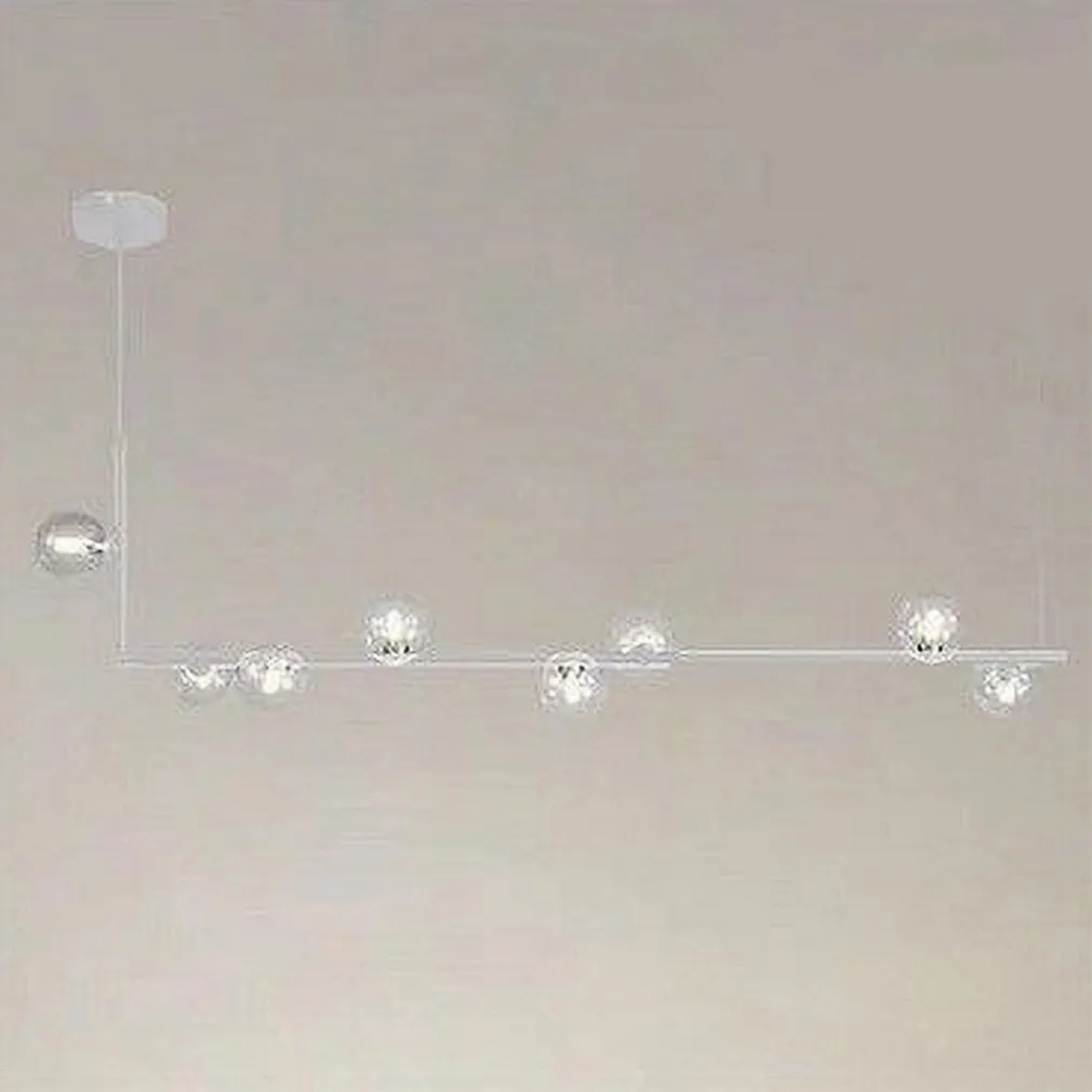 Questo lampadario è un elemento d’arredo unico, progettato per soddisfare esigenze estetiche e pratiche. Le 8 sfere di vetro con attacco G9 si distribuiscono orizzontalmente, creando un effetto visivo spettacolare e diffondendo la luce in maniera uniforme. La struttura robusta di alta qualità garantisce resistenza e durabilità nel tempo, mentre il cavo regolabile ti permette di adattare l’altezza in base alle esigenze della tua stanza.