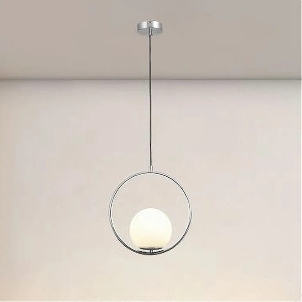 Lampadario a Sospensione Cerchio Metallo Sfera Vetro Bianco Attacco E27 Argento 33467