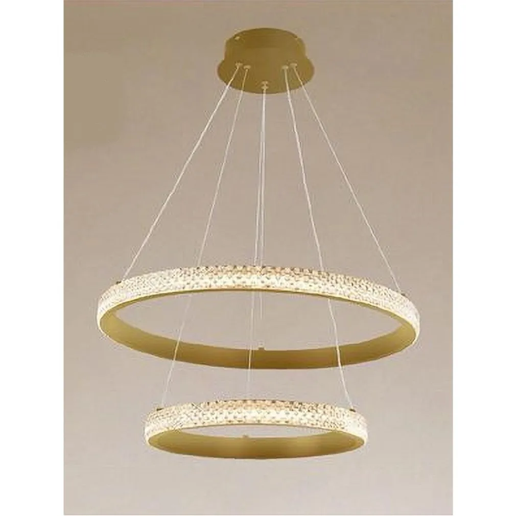 - Lampadario a sospensione LED con 2 cerchi anelli in cristallo.