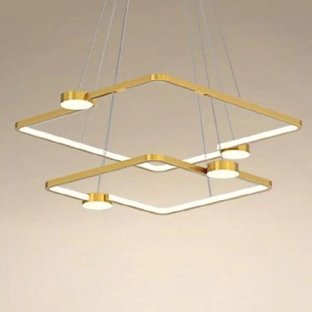 Lampadario a Sospensione LED 60W 2 Quadrati con Telecomando – Design Moderno Oro 71200