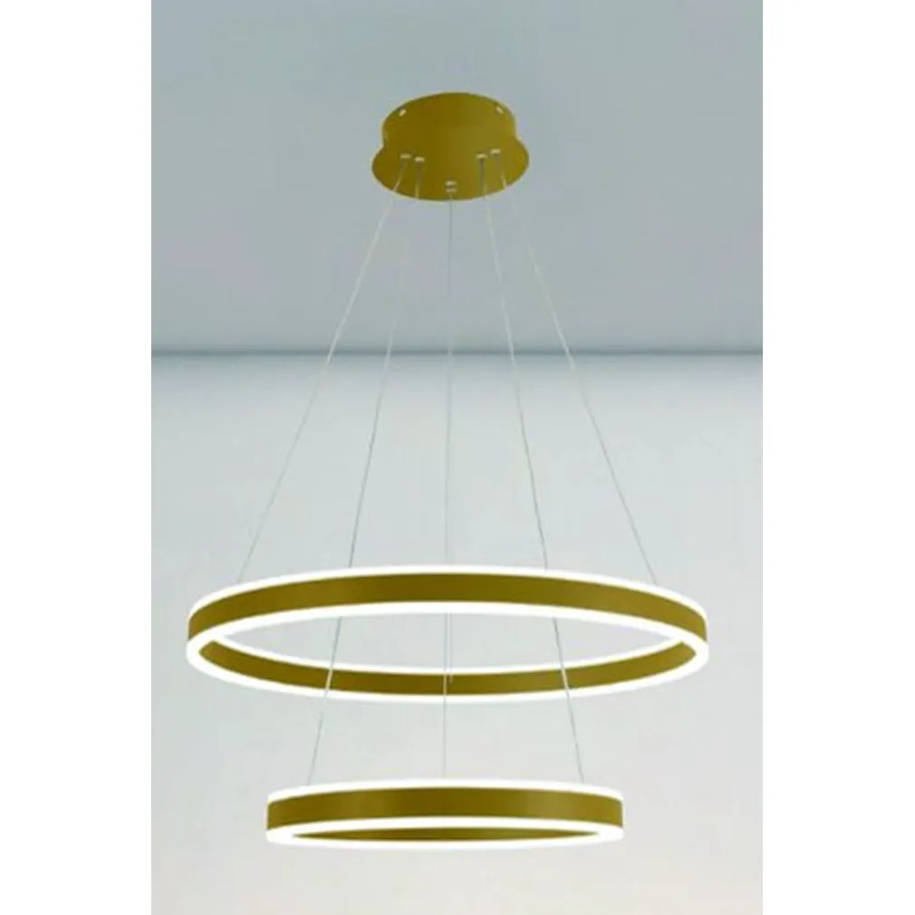 Lampadario a Sospensione LED Moderno Doppio Cerchio Oro 58W con Telecomando 31883