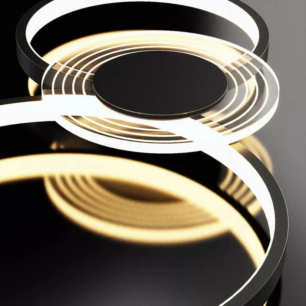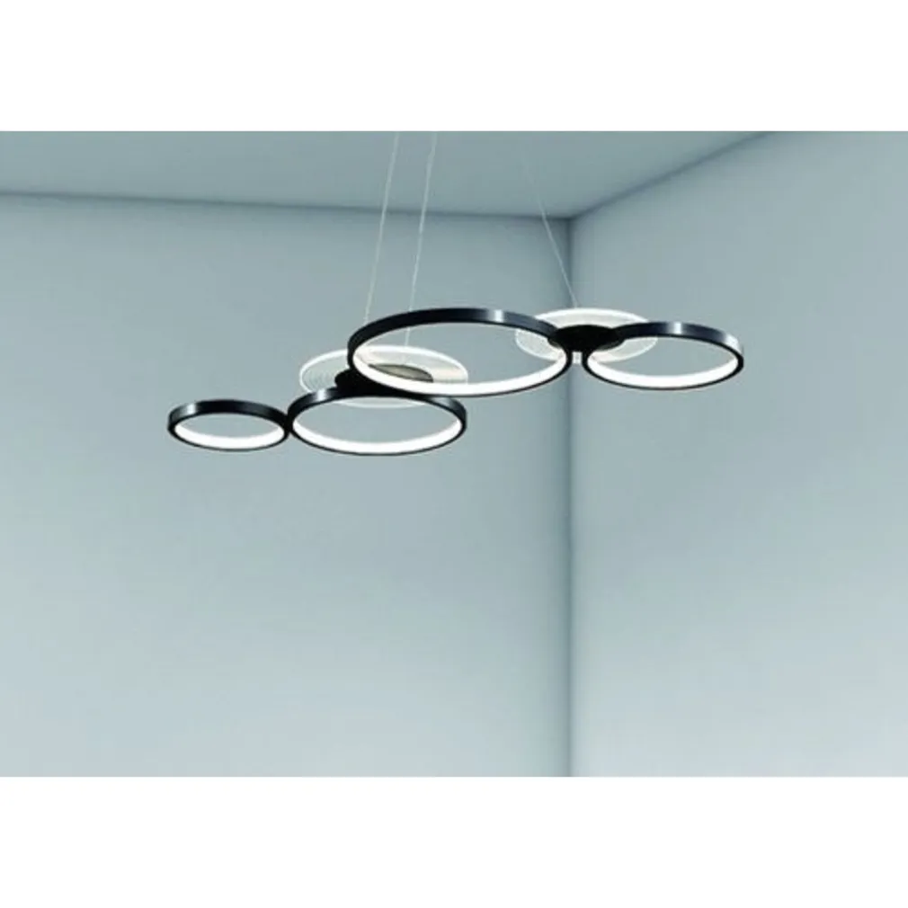 Lampadario a Sospensione LED Nero 65W 6 Anelli Luminosi Moderno con Telecomando – Modello 71415
