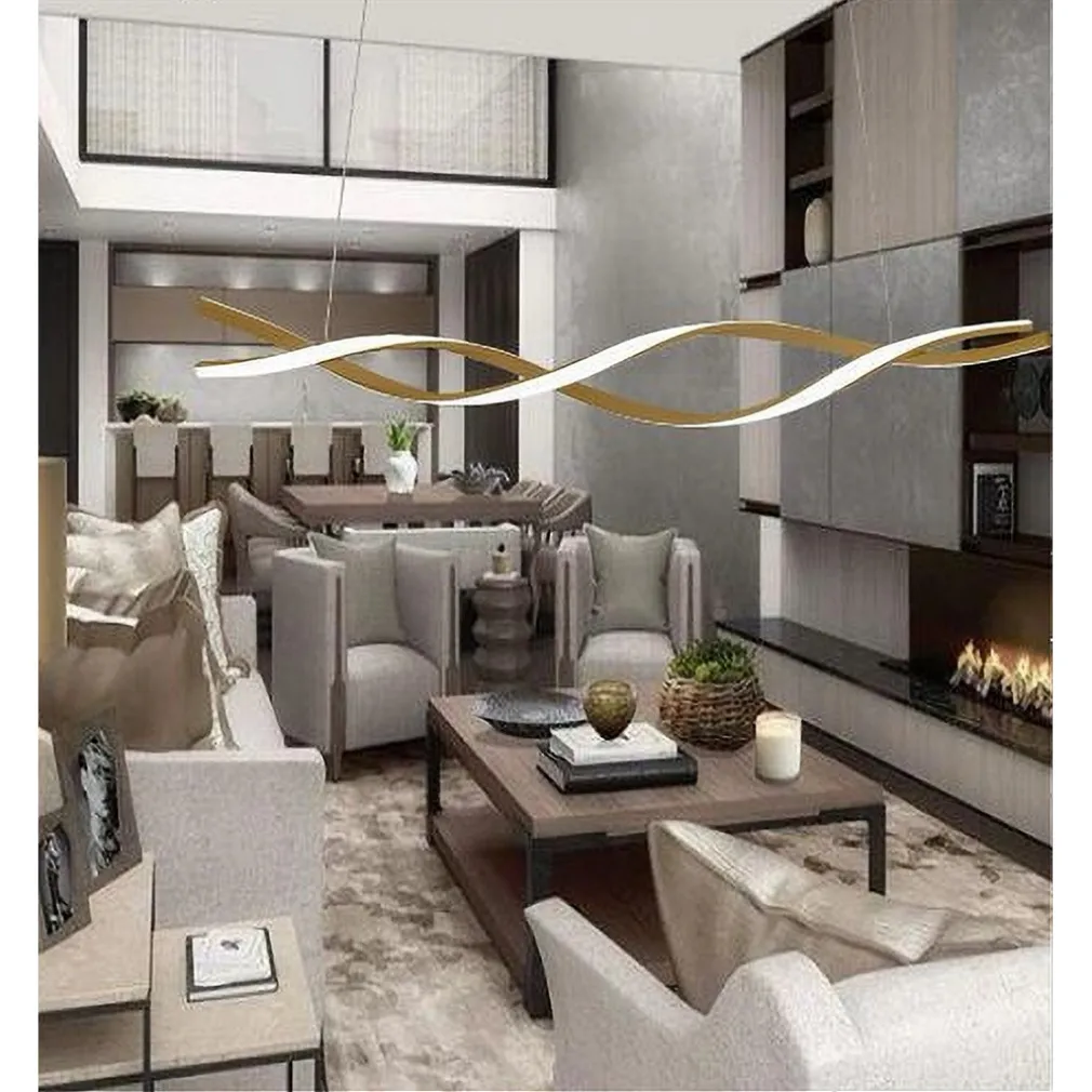 Illumina i tuoi spazi con stile e funzionalità grazie al nostro lampadario sospeso dal design moderno e creativo. Realizzato in alluminio oro con una struttura sinuosa e dinamica, questo lampadario non è solo una fonte di luce ma anche un pezzo d’arredo elegante e sofisticato. La scelta ideale per chi desidera combinare estetica e praticità.