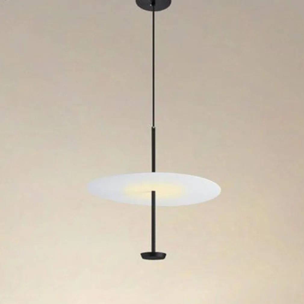 - Lampadario a sospensione con disco paralume piatto.