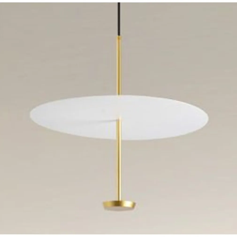 Lampadario a sospensione LED 18W Disco Paralume Piatto Bianco Oro Tondo 33207