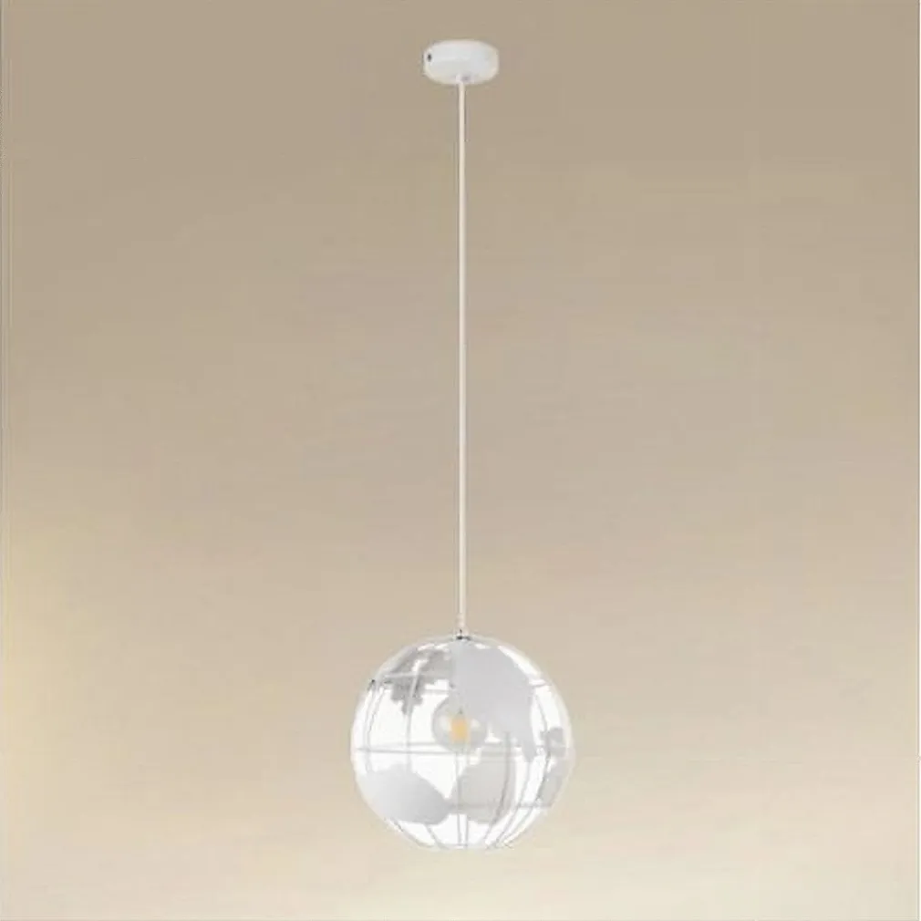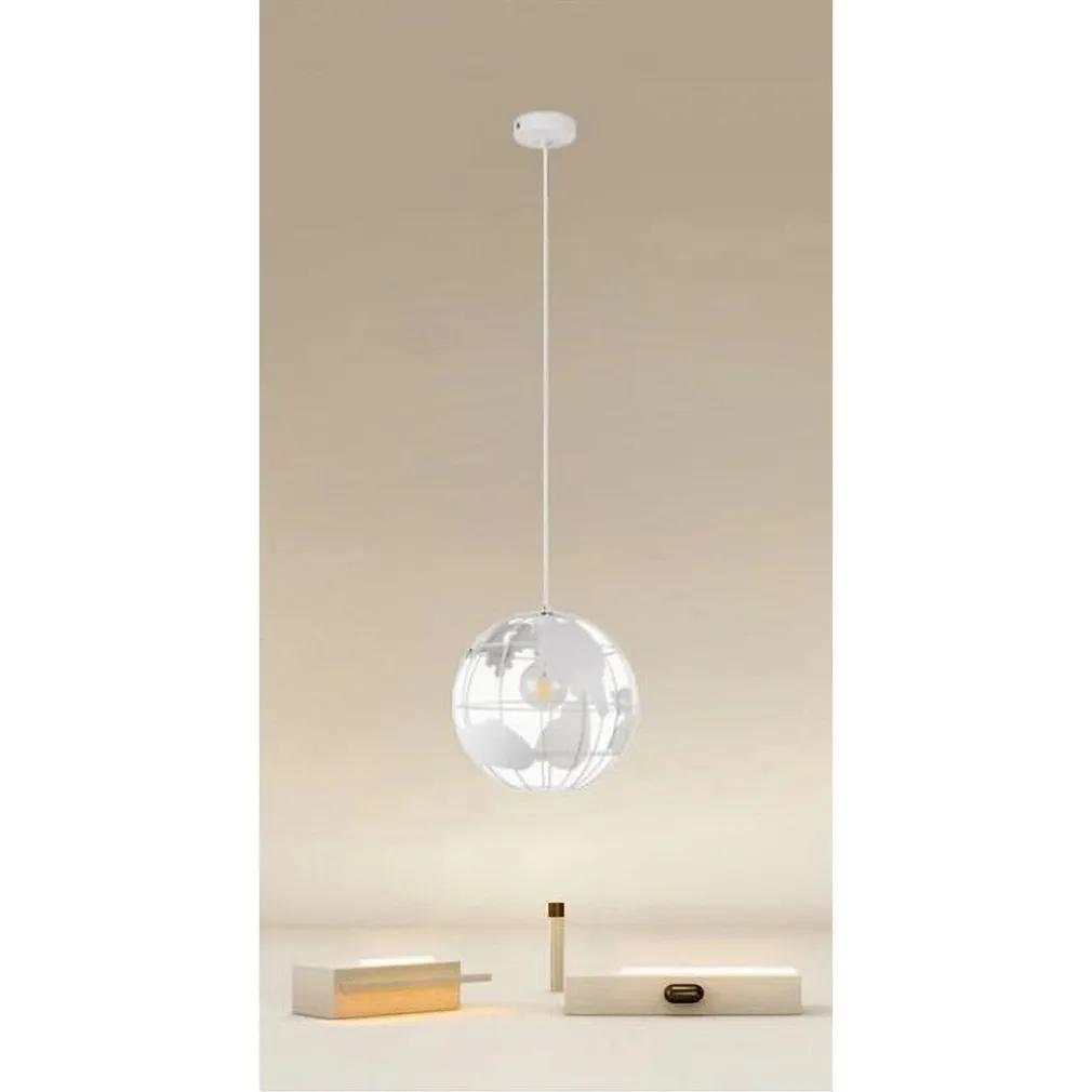 LAMPADARIO A SOSPENSIONE MAPPAMONDO E27 IN METALLO BIANCO SFERA GLOBO SOSPESO 33931