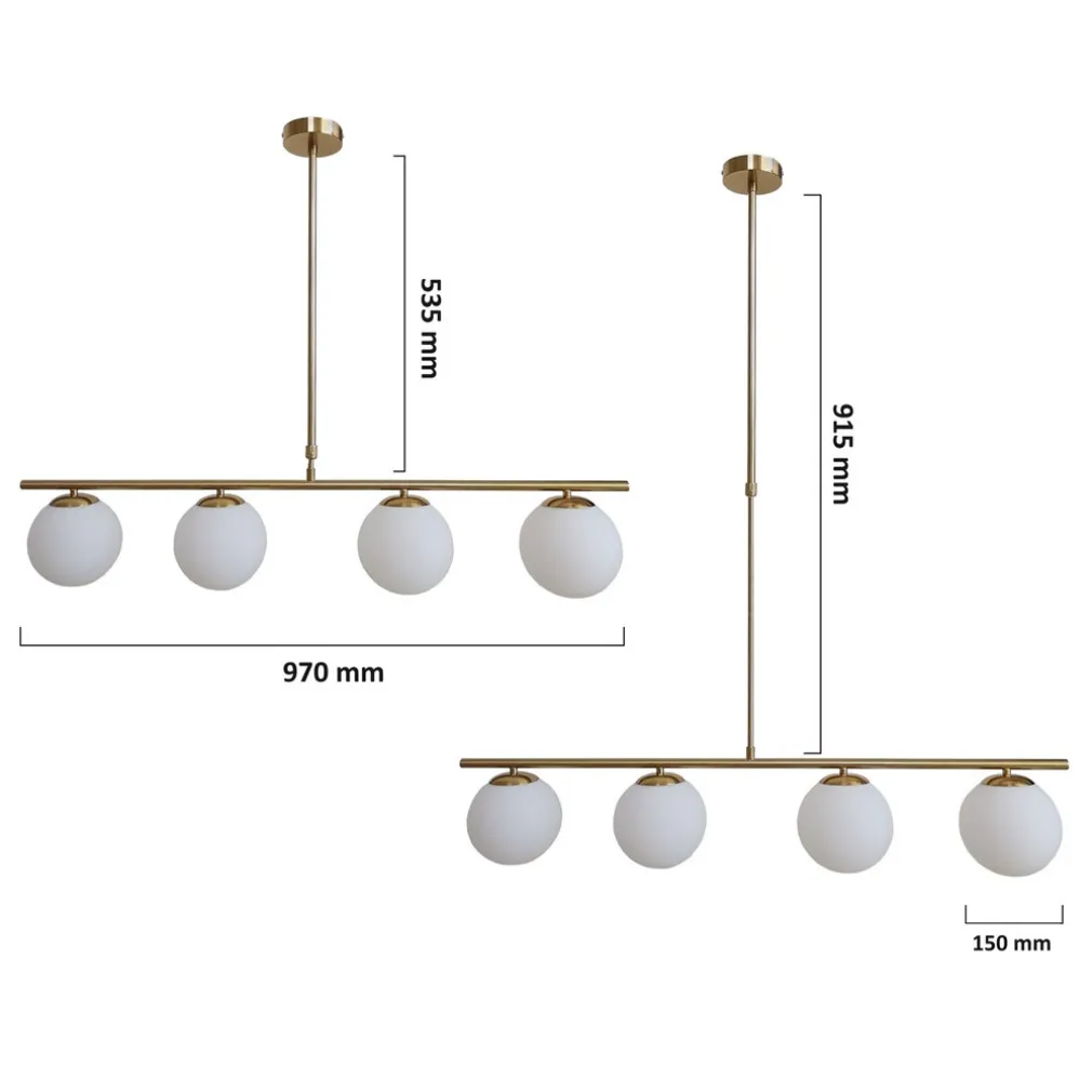 Concludendo, il Lampadario a sospensione oro con 4 sfere bolle bianche in vetro è la soluzione ideale per chi cerca una luce elegante e moderna, capace di arricchire qualsiasi ambiente con un tocco di classe senza rinunciare alla funzionalità.