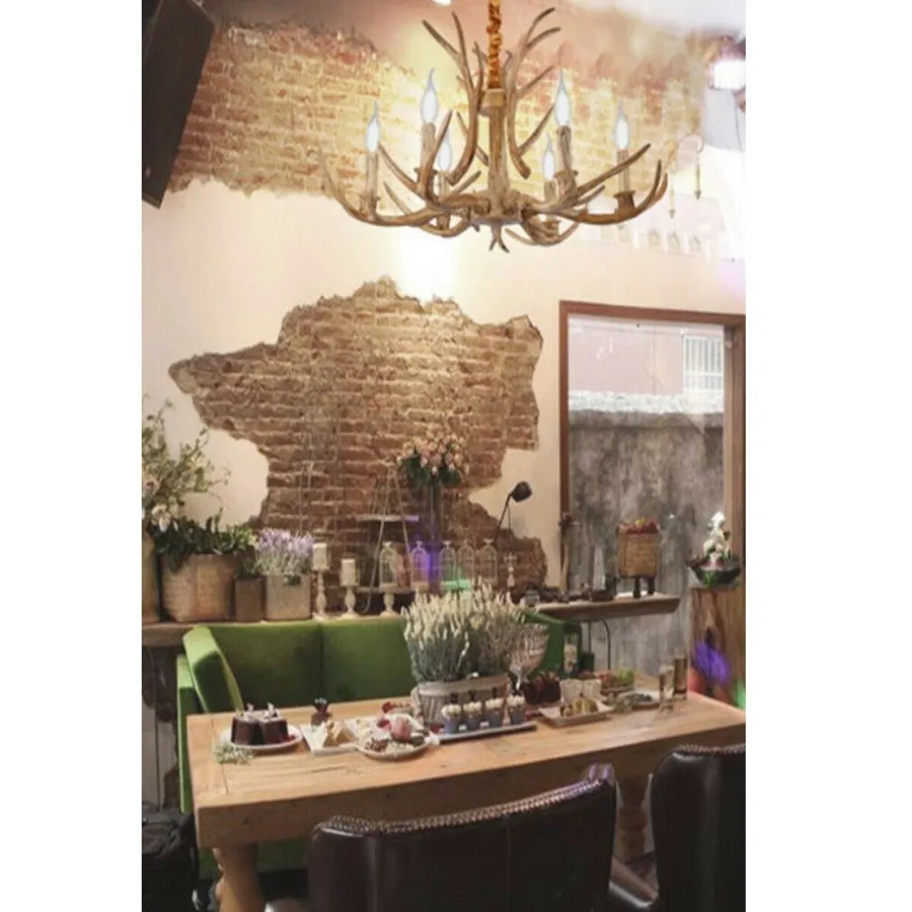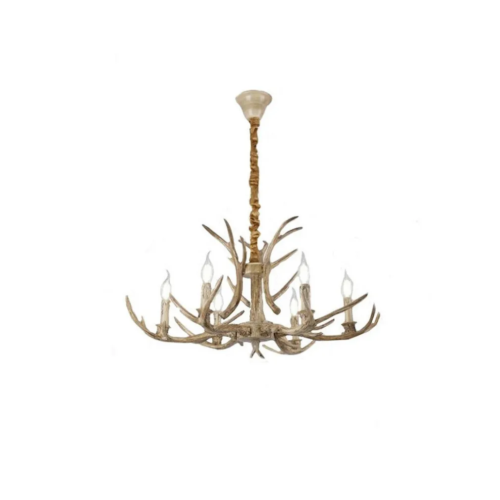 Lampadario a sospensione dal design rustico a forma di corna di cervo perfetto per arredare casa, bar, pub, ristoranti, ecc. con originalità. Dotato di 6 portalampada con attacco E14.