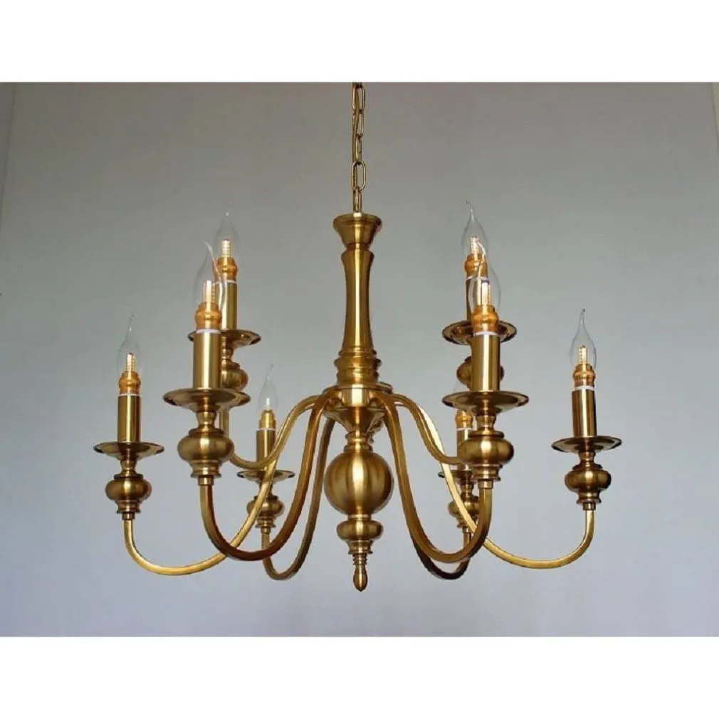 Lampadario da soffitto design classico, 8 bracci, realizzato in metallo dal finish spazzolato effetto ottone. Valorizza il tuo spazio interno con questa lampada da soffitto dallo stile classico d’ispirazione vintage, perfetta per illuminare sale da pranzo, camere da letto, studi. Questa lampada da soffitto è dotata di 8 punti luce. I materiali e la forma la rendono un elemento di arrendo funzionale ed elegante. Lampadine non incluse.