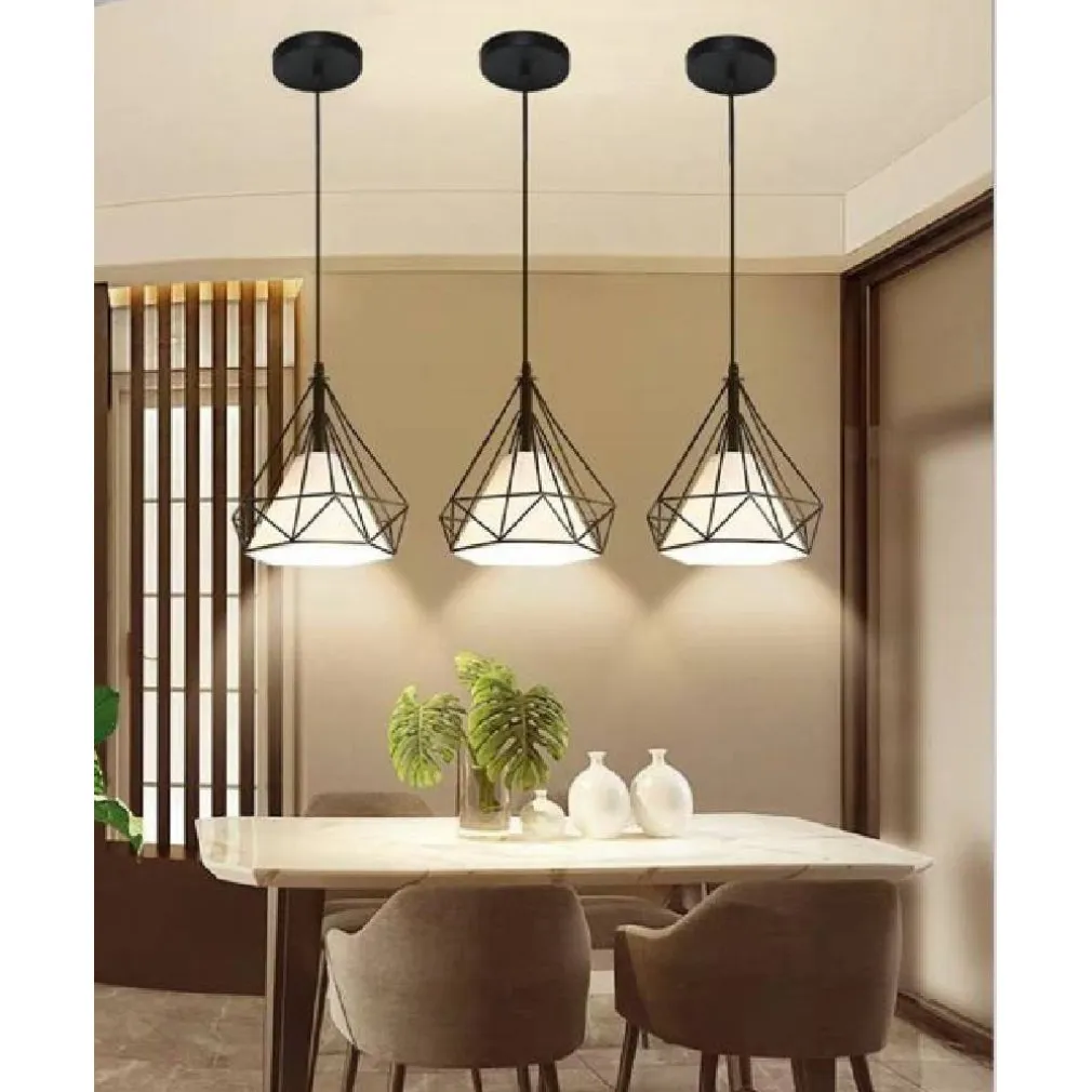 Lampadario sospeso dal design moderno e innovativo con pendente a forma di diamante con paralume bianco perfetto per casa ma anche in bar, locande, pub, ristoranti. Grazie al suo design unico si adatterà facilmente al tuo arredamento, dando un tocco di originalità. È possibile regolare la lunghezza della corda così da creare un gioco di altezza. Disponibile in due diverse colorazioni, bianco o nero. Viti per l’installazione incluse.