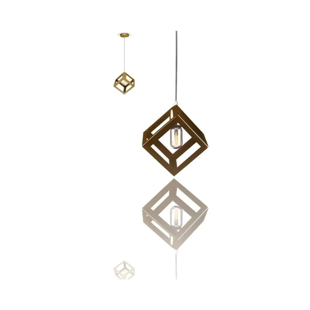 Lampadario metallo geometrico 3d quadrato champagne oro lampada v3833 sospensione design moderno 22.5×22.5x125cm attacco e27