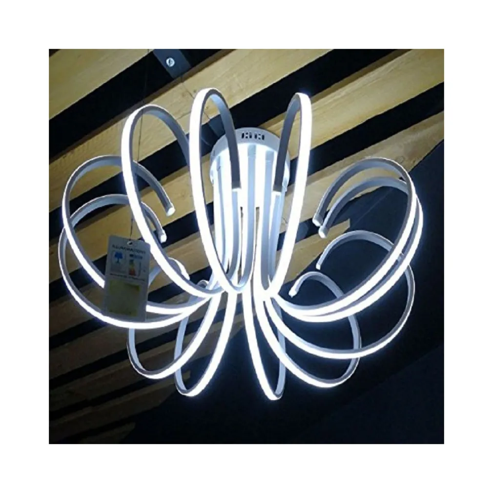 LAMPADARIO LAMPADA 8 NEON LUCE LED BIANCO FREDDO 6000K SOFFITTO SOSPENSIONE PENDENTE POLIURETANO MODERNO DESIGN.