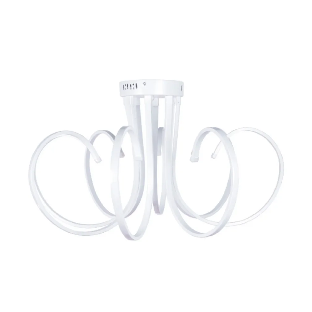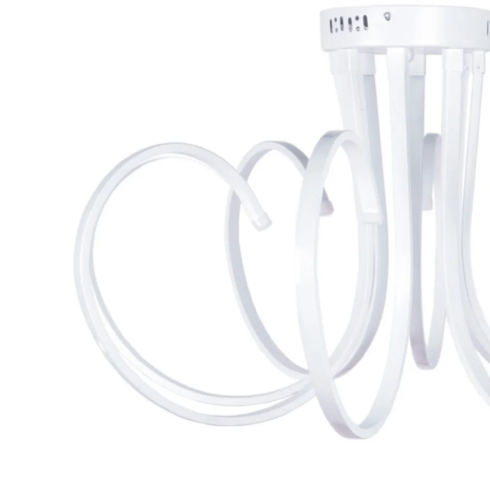 Lampadario dalla singolare forma e dal corpo bianco interamente realizzato in termoplastica con paralume in acrilico trasparente e chip led integrati. Rappresenta il perfetto compromesso tra design minimalista e contemporaneo ed eccellente intensità luminosa Ideale per un elegante soggiorno ma anche per negozi che preferiscono illuminare regalando un design particolare ai loro ambienti
