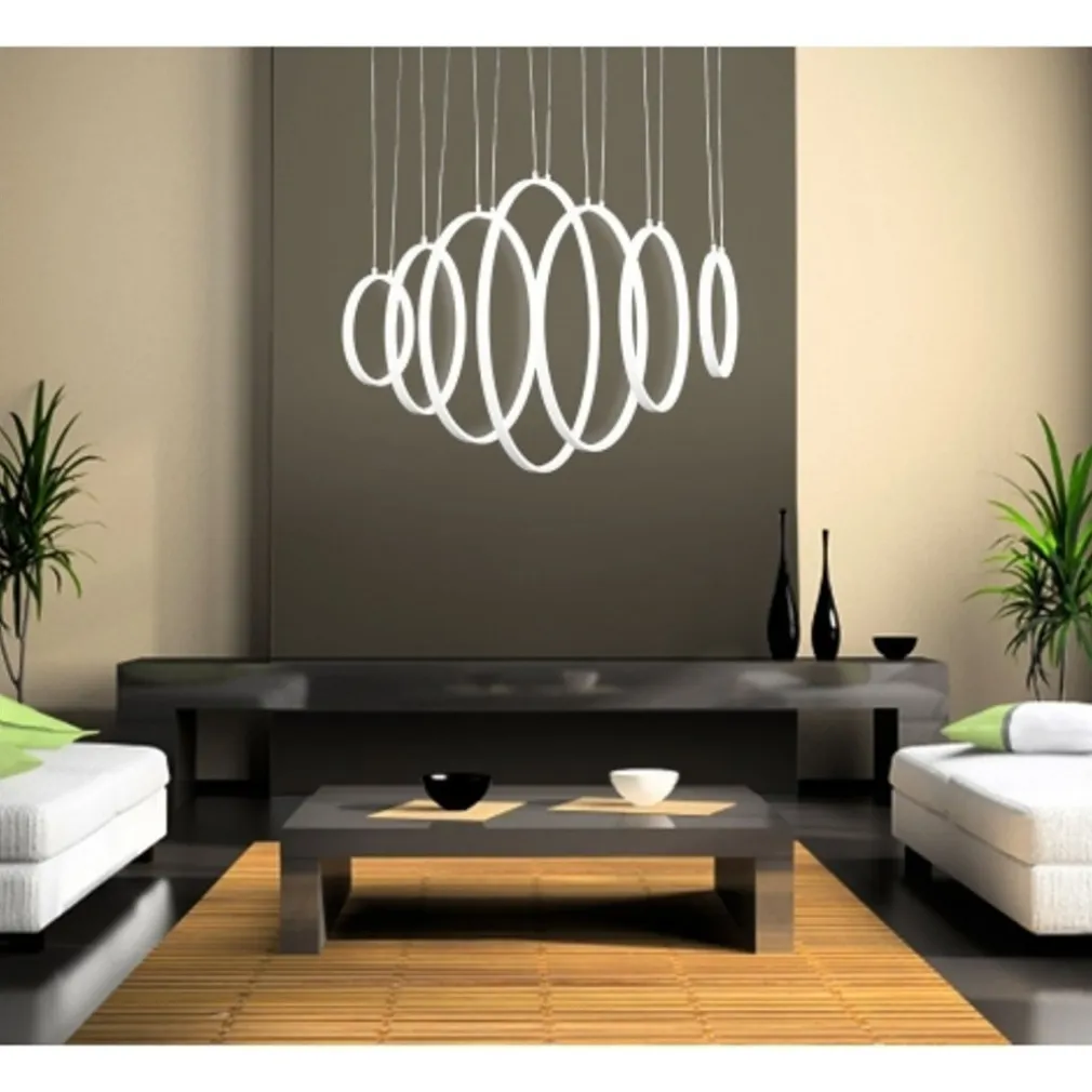 Lampadario Lampada Sospensione Anelli Luce LED Bianco Freddo Soffitto Pendente