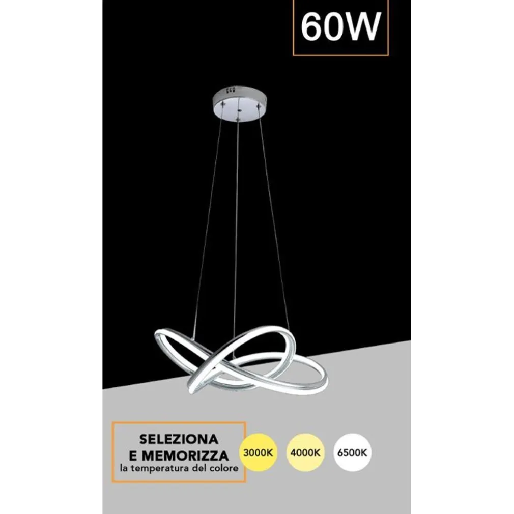 LAMPADARIO LED MODERNO INTRECCIATO 60W IP20 CROMATO CCT TRIPLA COLORAZIONE LUCE A50-A3C