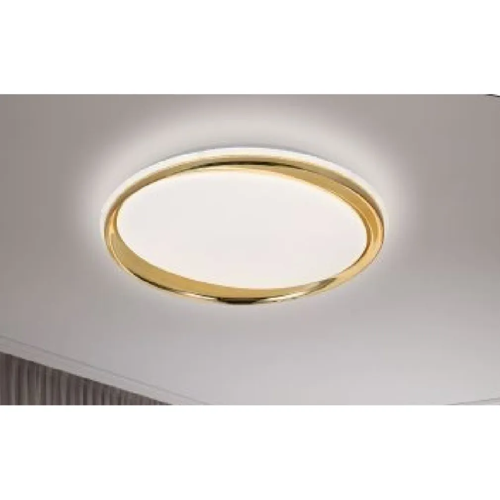 Plafoniera led da soffitto con finitura oro perfetta per donare un tocco di elegenza e illuminare camere da letto, salotti, corridoio ma anche uffici e locali commerciali. E’ realizzata in ferro verniciato e acrilico. È dotata di tecnologia CCT che consente di ottenere in un unico prodotto 3 temperature di luce: 3000K, 4000K, 6000K. Tutto è gestibile mediante il telecomando in dotazione, inoltre sempre grazie al telecomando possiamo accedere spegnere la luce, dimmerare l’intensità abbasso o aumentando l’intensità della luce, oppure impostare un timer di autospegnimento.