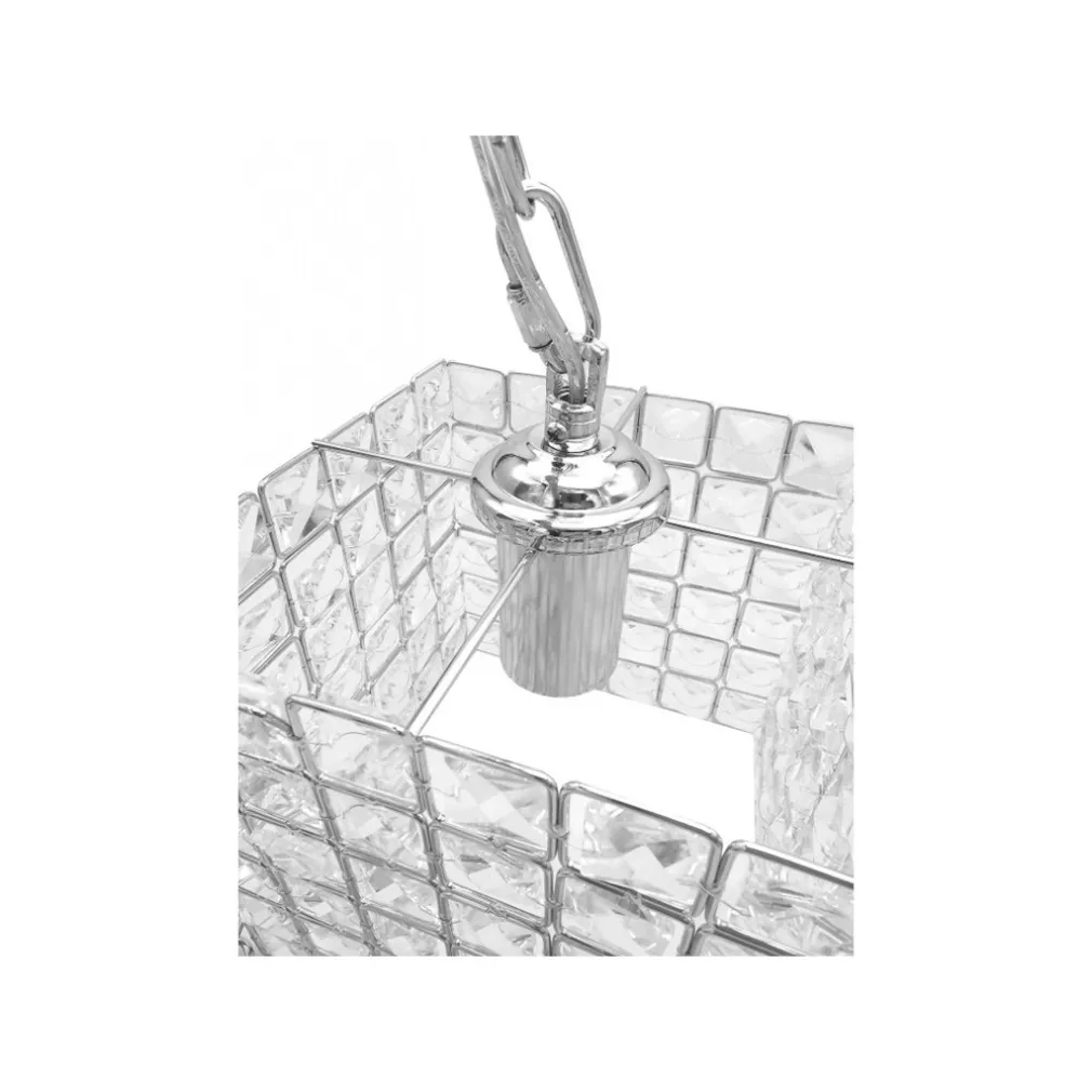 Lampadario Sospeso Cubo con Cristalli Lampada Luce E27 Argento Quadrato – Eleganza e Funzionalità in Ogni Stanza