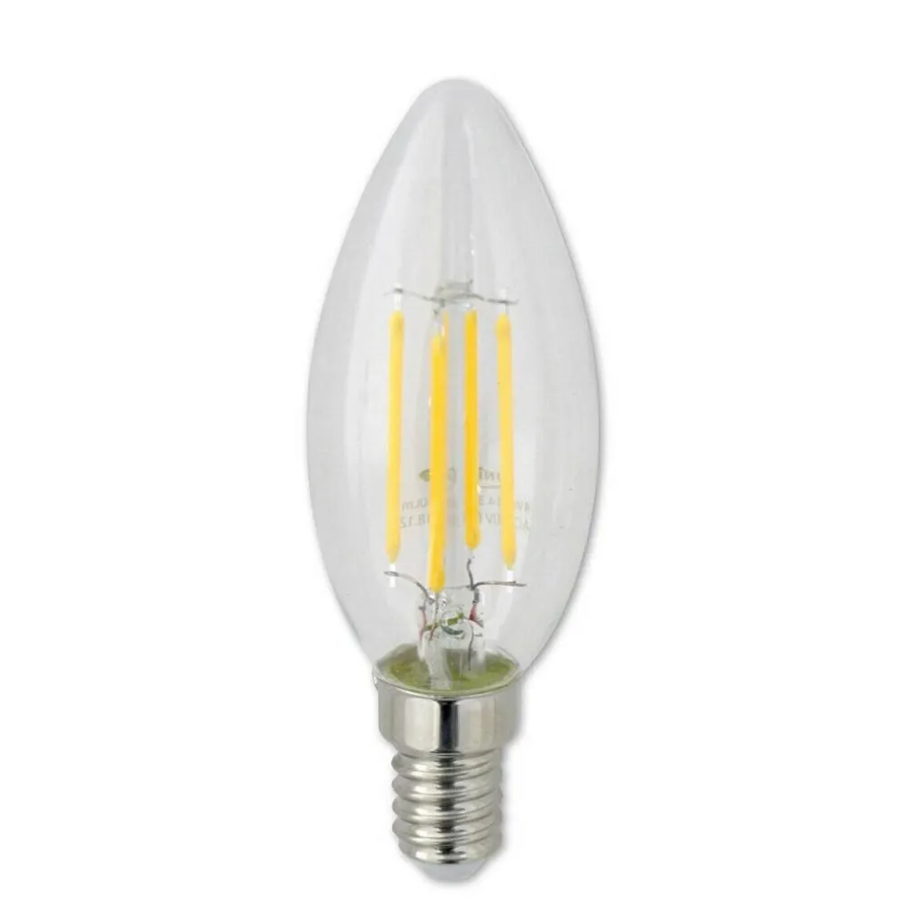 Lampadina con 4 led a filamento a forma di candela con una potenza di 4 watt pensata per l’illuminazione decorativa dei vostri interni. Sfruttando la tecnologia Led, avrete il vantaggio di un basso consumo con una durata fino a 10.000 ore e un ampio fascio di luce con un’apertura angolare di 360° che si adatta perfettamente a qualsiasi apparecchio d’illuminazione.