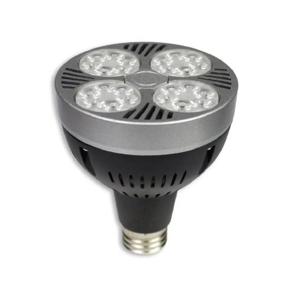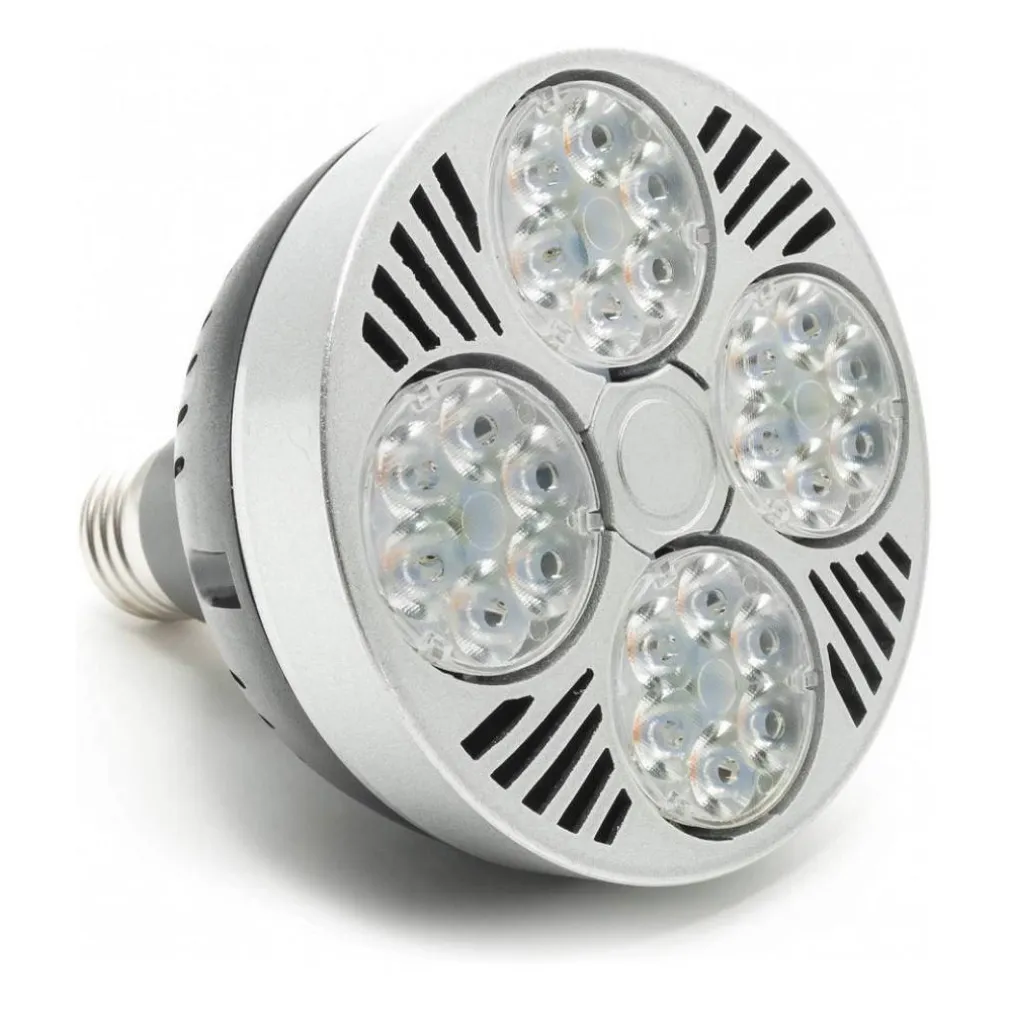 Lampadina led PAR30 E27 35 watt 24 led a luce calda 3000K fredda 6500k naturale 4000k equivalente a incandescenza 315 watt. Lampadina dotata di 24 led, protetti da quattro piccoli pannelli in plastica. A differenza delle classiche lampadine, mantiene sempre la solita luminosità, anche dopo lunghi periodi di utilizzo. Dispone di un ottima tecnologia che fa risparmiare 90% su l’energia elettrica ed ha una durata molto più lunga circa 30.000 ore. Lampada LED ad alta efficienza potenza 35W ideale per la sostituzione delle vecchie lampade convenzionali di tipo PAR30.