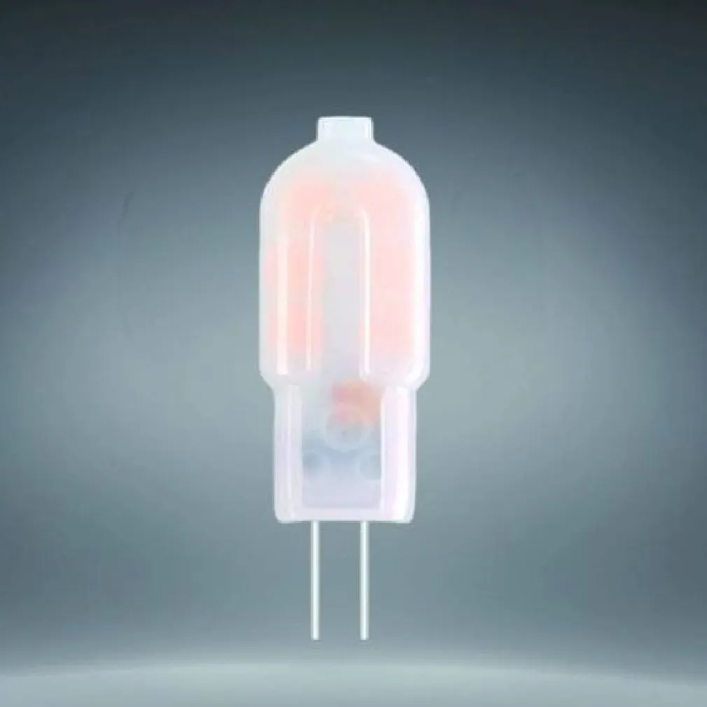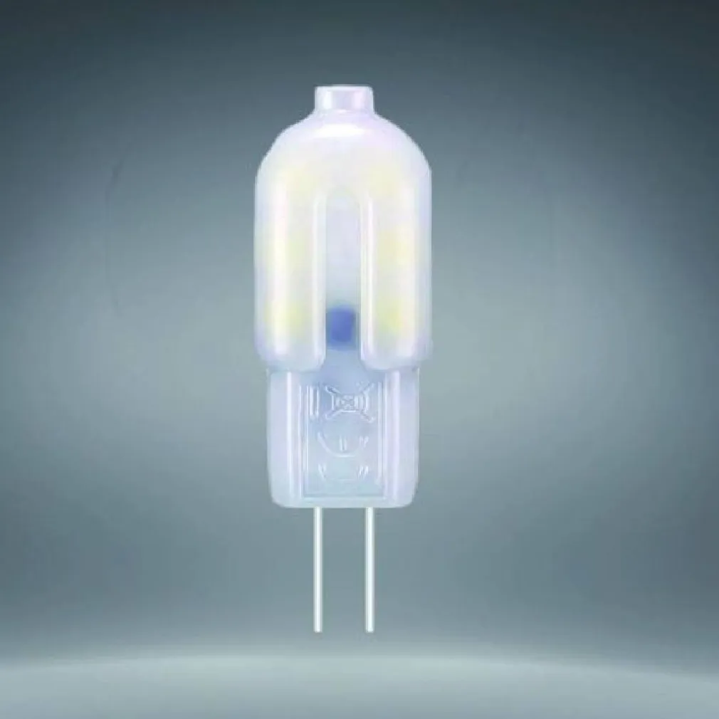 Lampadina led SMD con attacco G4 12 volt. Può essere utilizzata in sostituzione delle lampadine alogene con un funzionamento a bassa tensione. Con copertura opaca, che rispetto alle coperture trasparenti, permette un ampio angolo di luminosità della luce emessa. Grazie alla lunghissima durata è indicata per l’illuminazione, in bar, ristoranti e alberghi. Il led è da 2W equivalente ad un alogena da 18w.