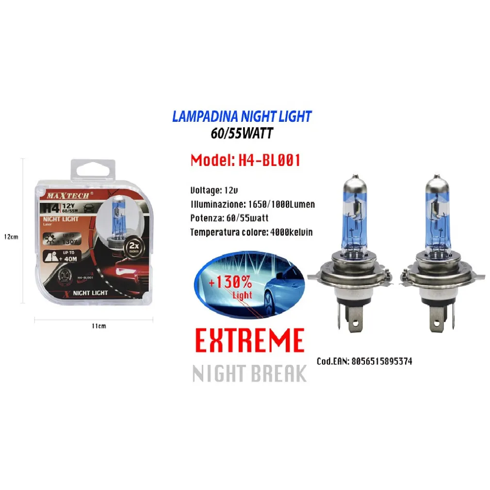 Per un’esperienza di guida notturna sicura e confortevole, affidati alla lampadina per auto H4-BL001. Grazie alla sua brillantezza e affidabilità, illuminerà la tua strada con chiarezza e precisione.