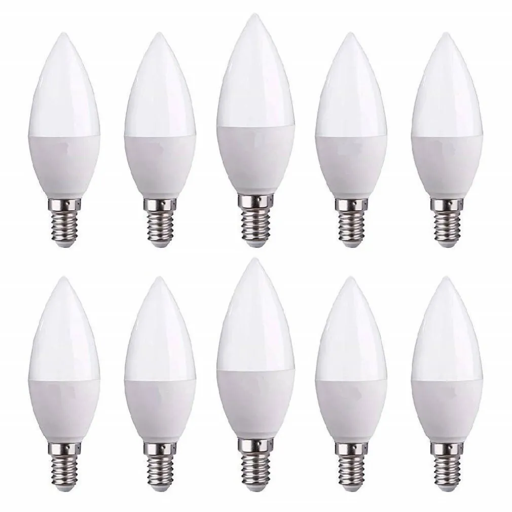 SET 10 PEZZI Lampada LED Chip Samsung SMD 4,5W E14 200° alta luminosità 470LM luce bianco caldo 3000K. Forma Candela C37 in materiale termoplastico (con copertura opaca)