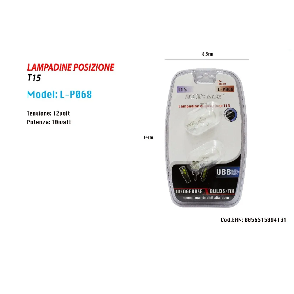 LAMPADINE DI POSIZIONE 12 V 10 WATT T15 L-P068 LAMPADINE ULTRA LUMINOSE