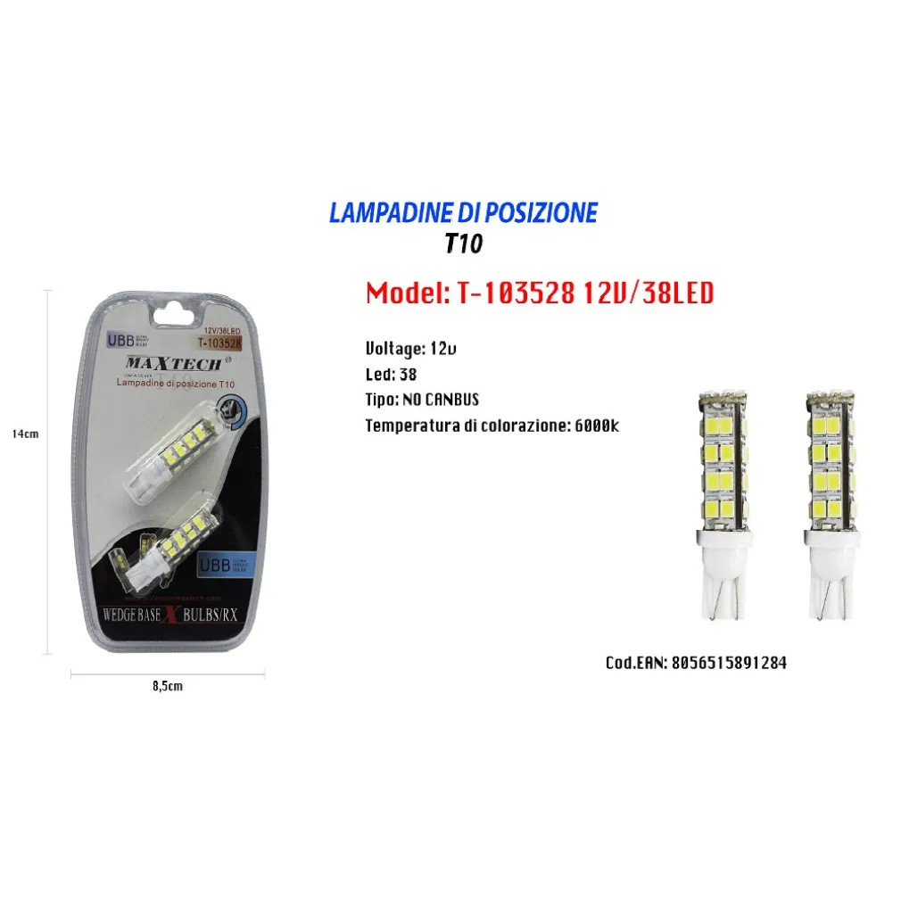 LAMPADINE DI POSIZIONE 12V 38LED T10 T-103528 LAMPADINE ULTRA LUMINOSE