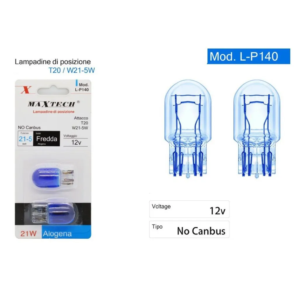 Lampadine di posizione W21-5W con base T20 compatibile con i veicoli dotati di impianto elettrico da 12 Volts. Ideate per essere utilizzate per le luci di posizione. Coppia di lampadine per auto W21-5W- T20.