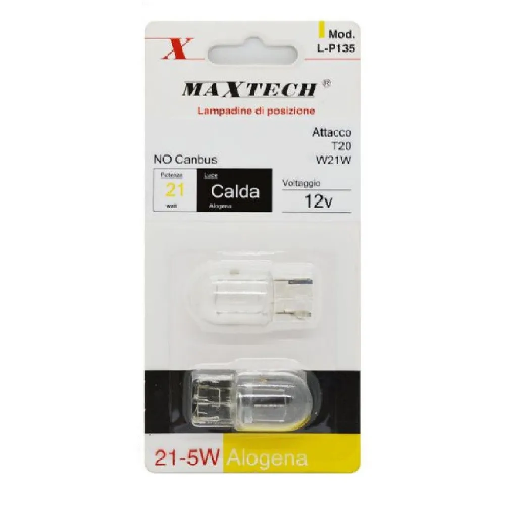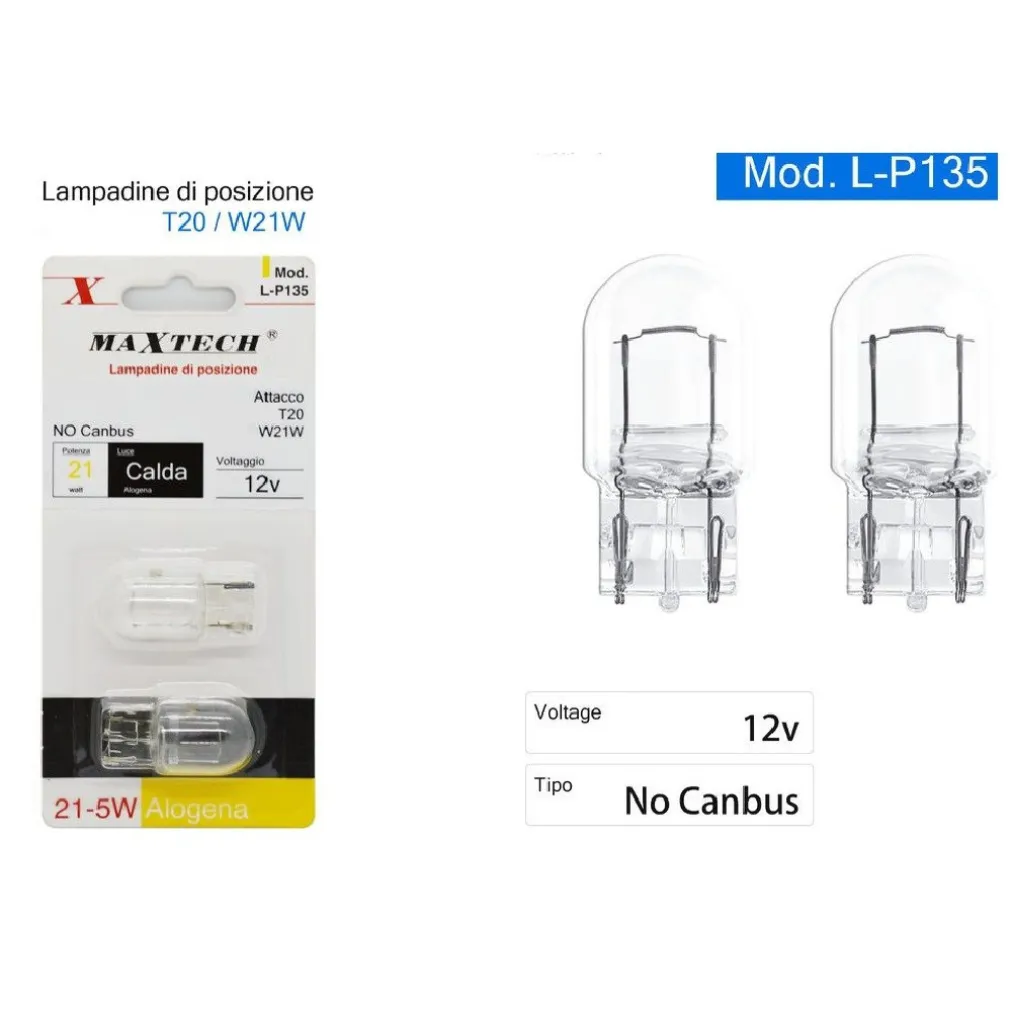 Lampadine di posizione W21W con base T20 e 21 Watt di potenza compatibile con i veicoli dotati di impianto elettrico da 12 Volts. Ideate per essere utilizzate per le luci di posizione. Coppia di lampadine per auto W21W- T20.
